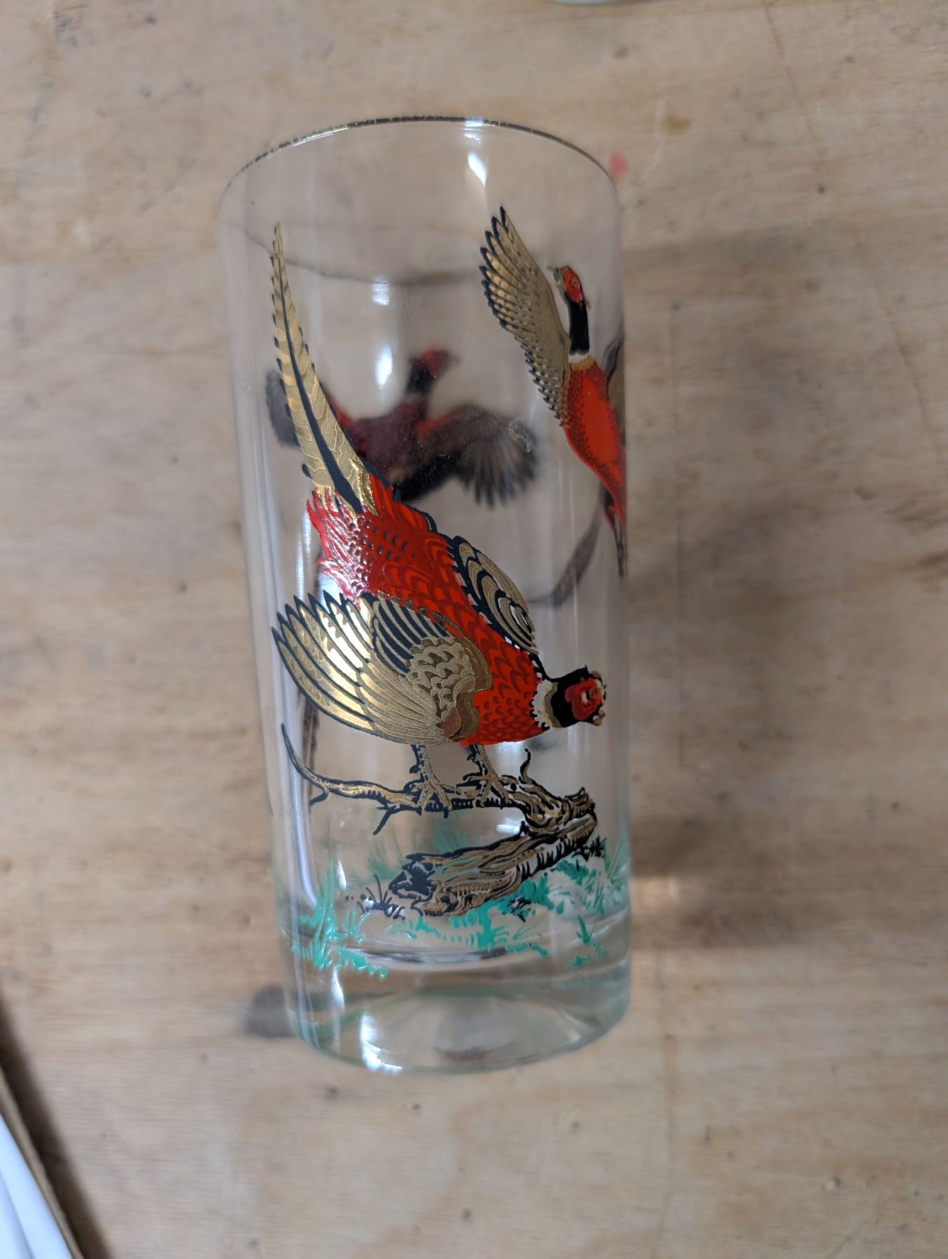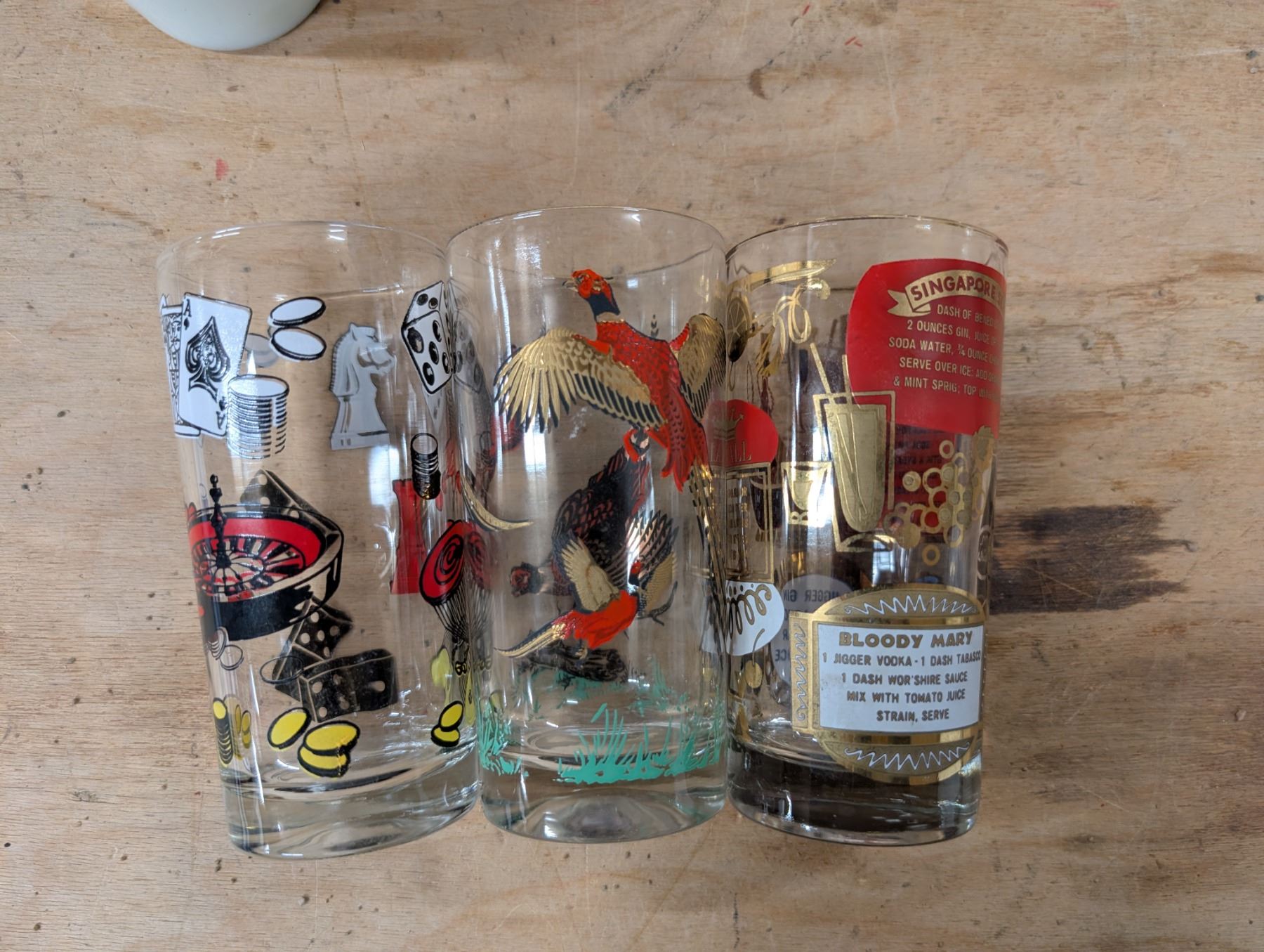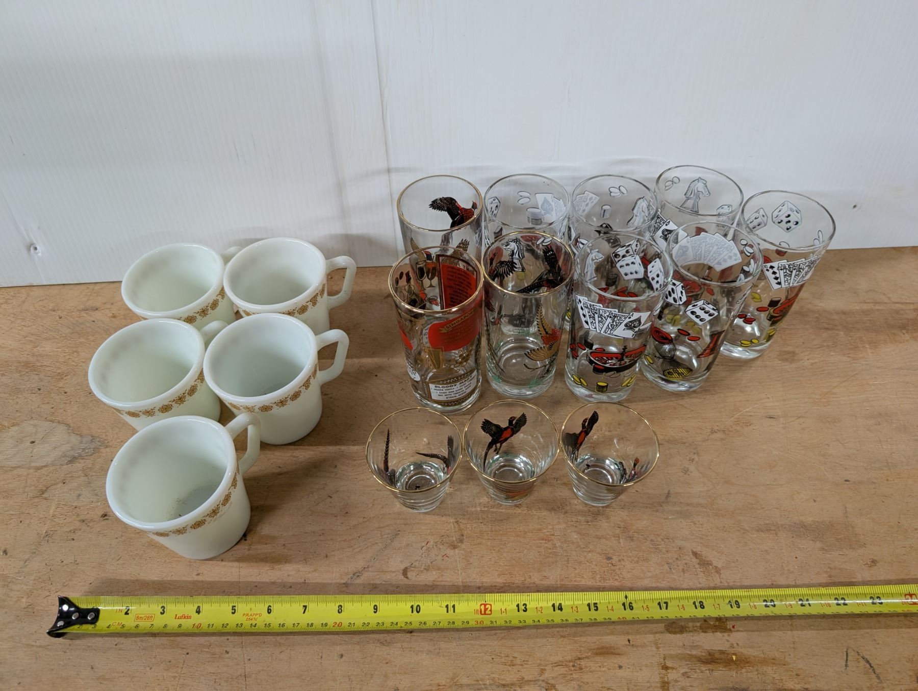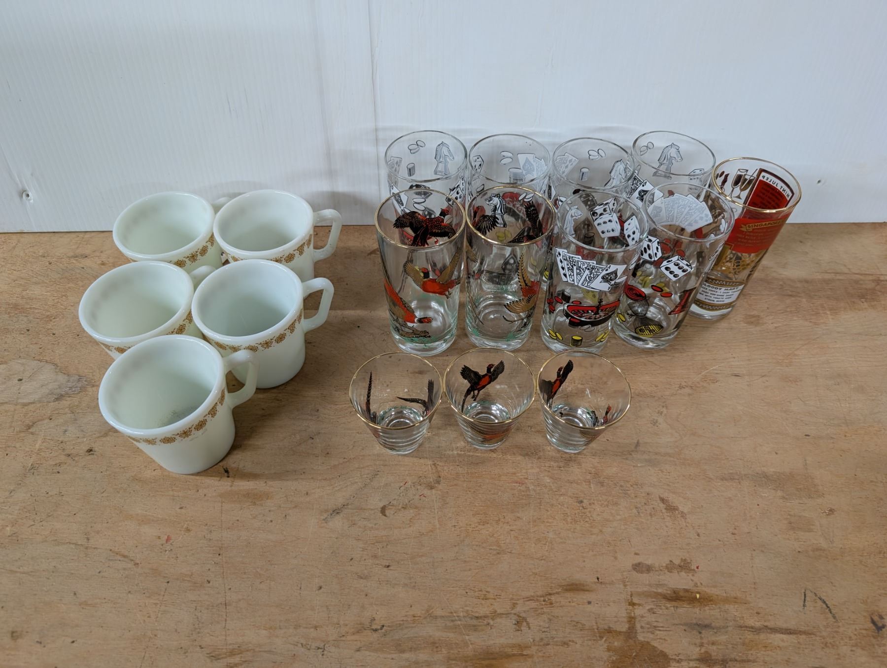 (S) Pyrex Glass Mugs, and Miscellaneous Designed Drinking glasses