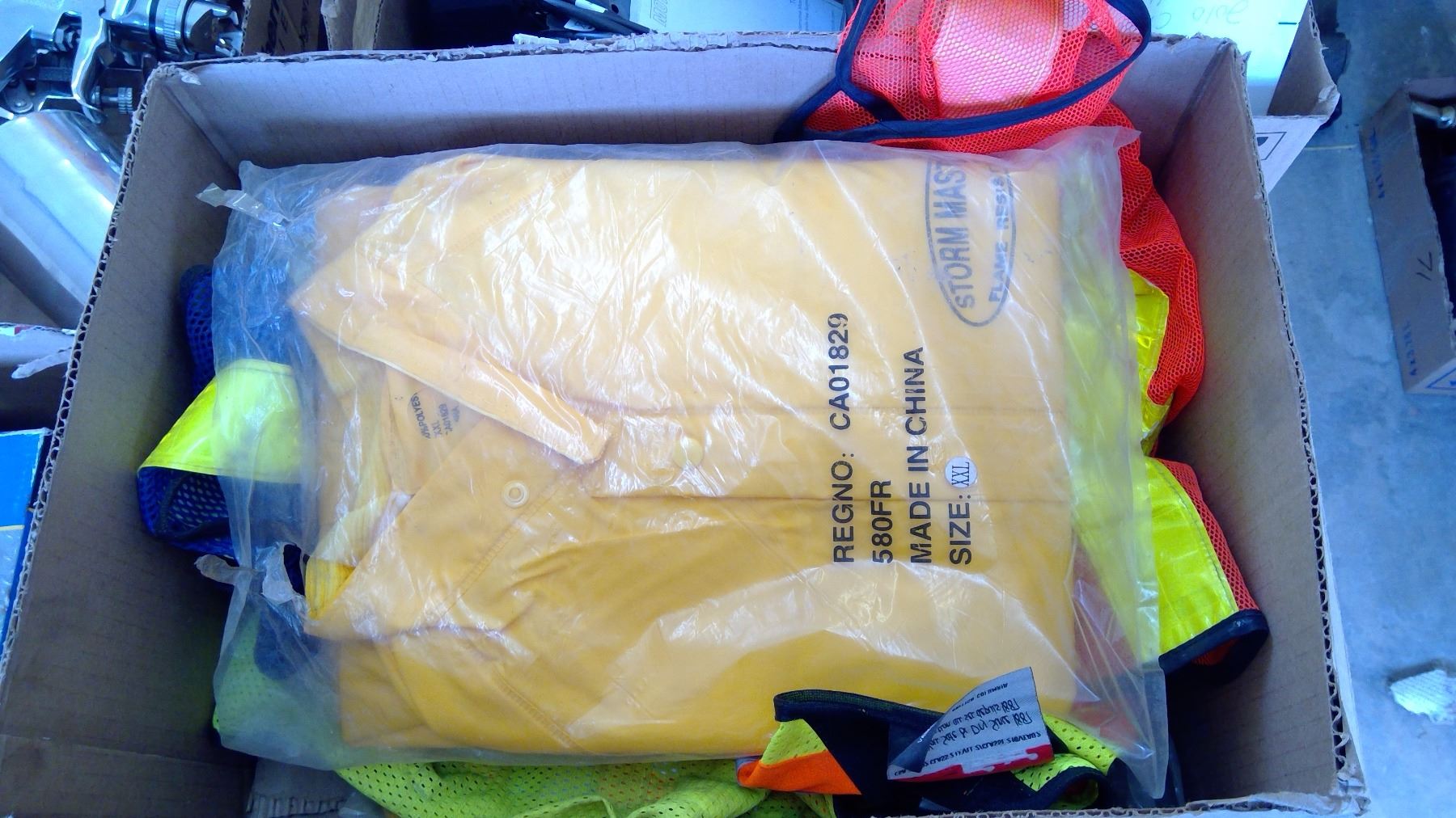 SAFETY VESTS & TWO XL RAIN SUITS