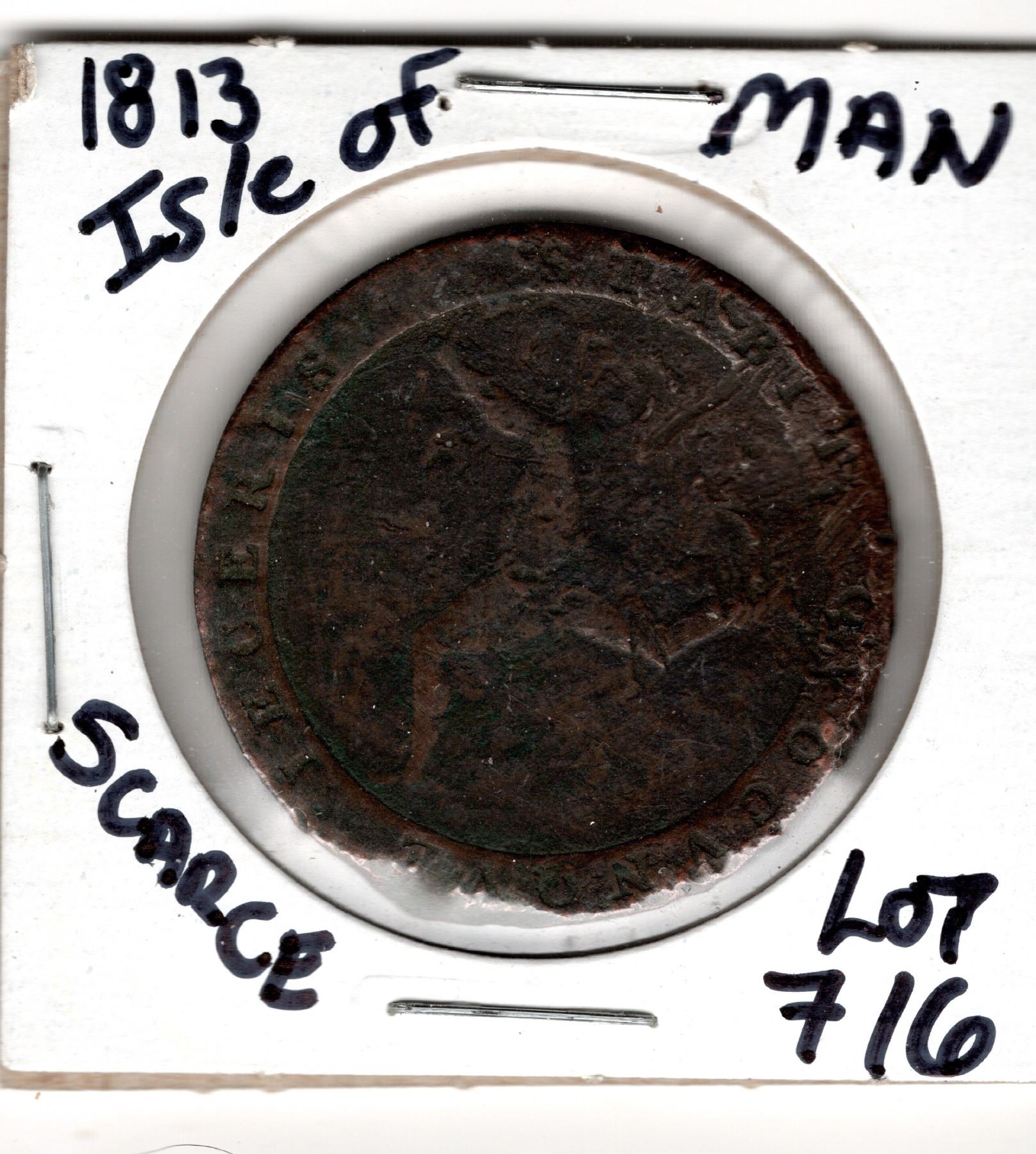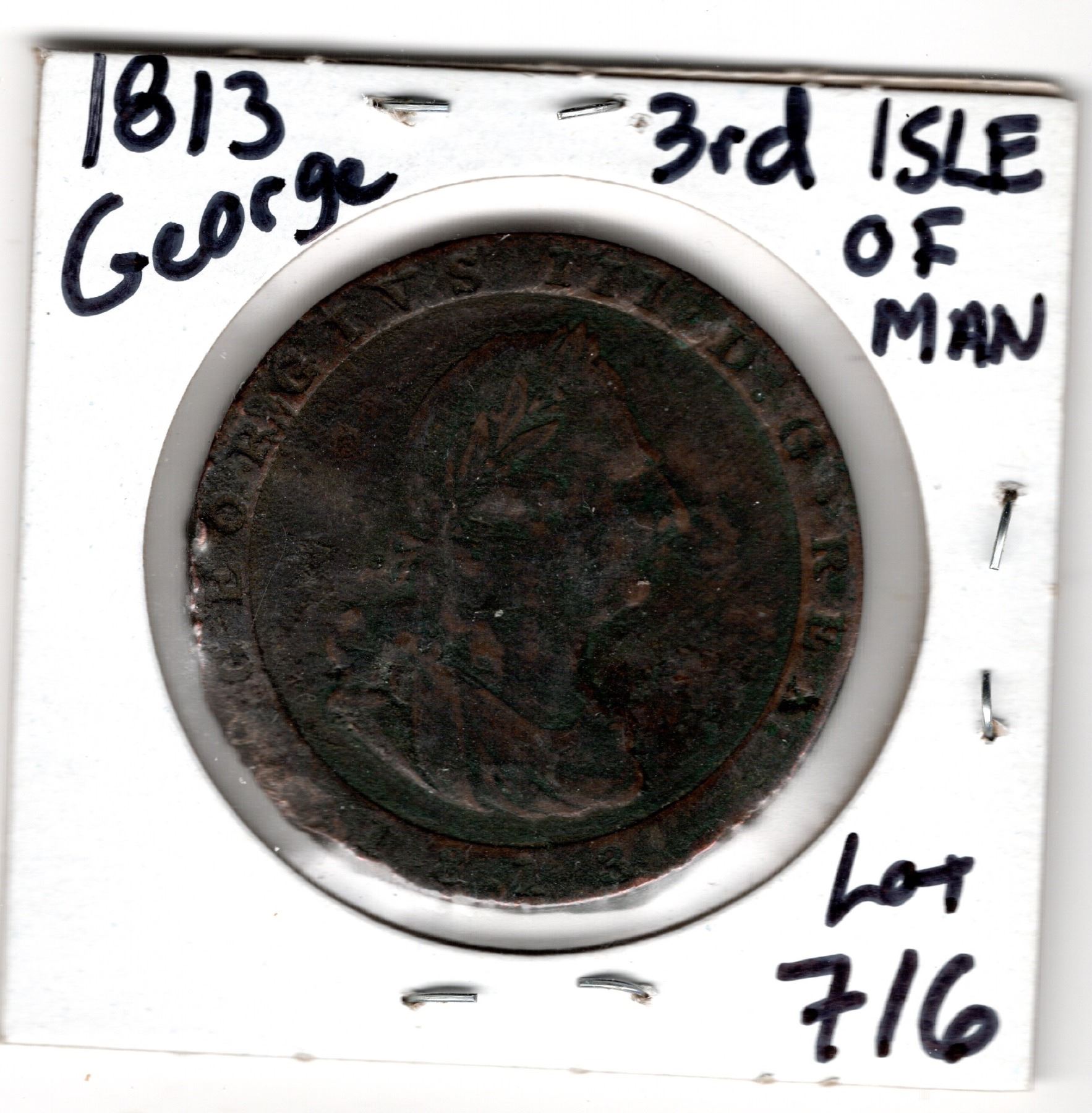 SCARCE 1813 ISLE OF MANN LARGE CENT TOKEN GEORGE 3RD