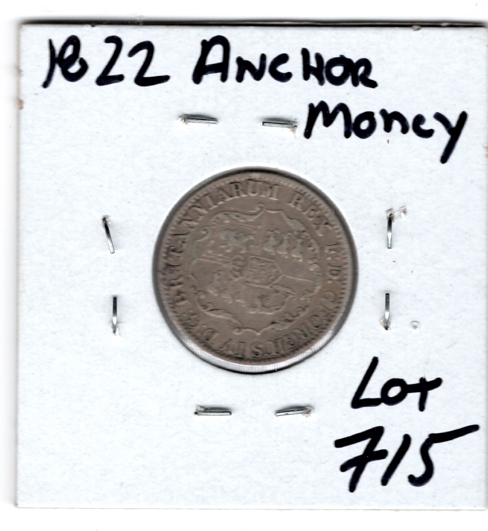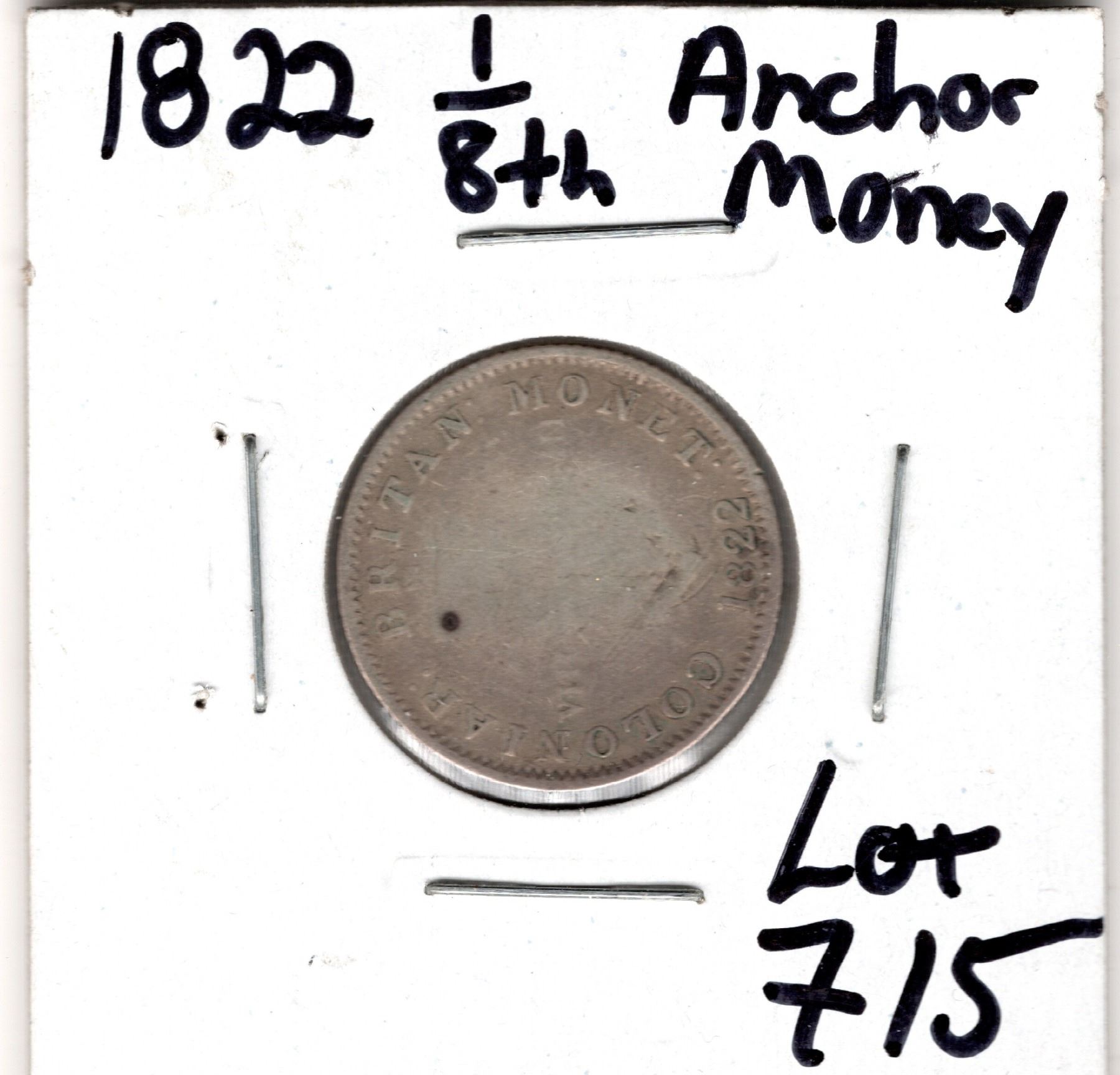 SCARCE 1822 1/8TH DOLLAR WEST INDIES ANCHOR MONEY