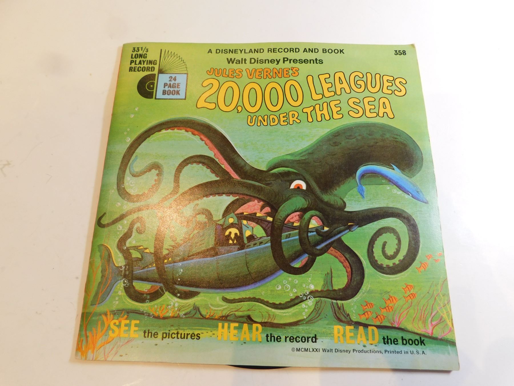 SCARCE WALT DISNEY “20 000 LEAGUES UNDER THE SEA” BOOK AND 45 GREAT SHAPE