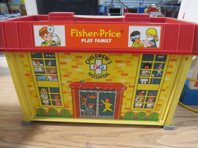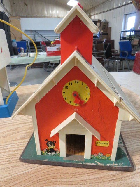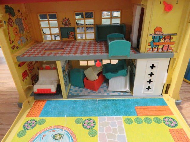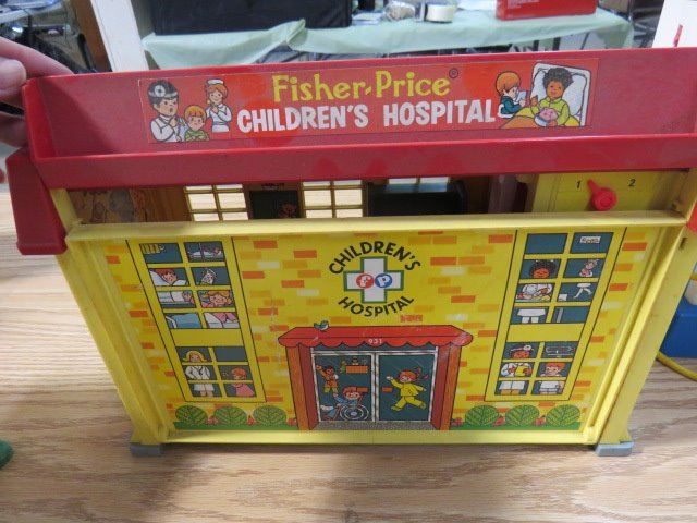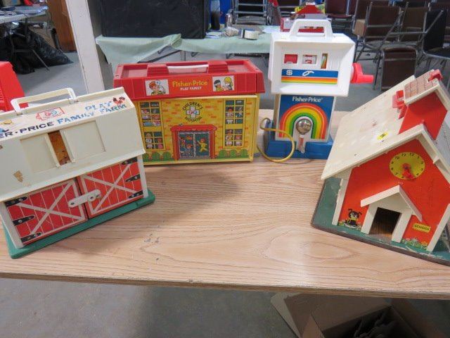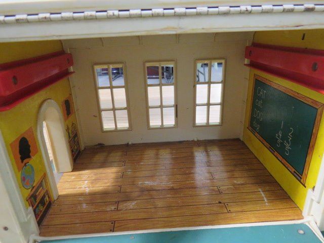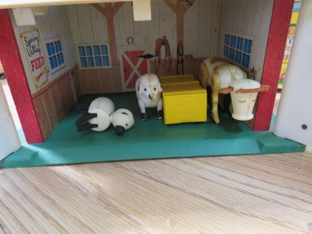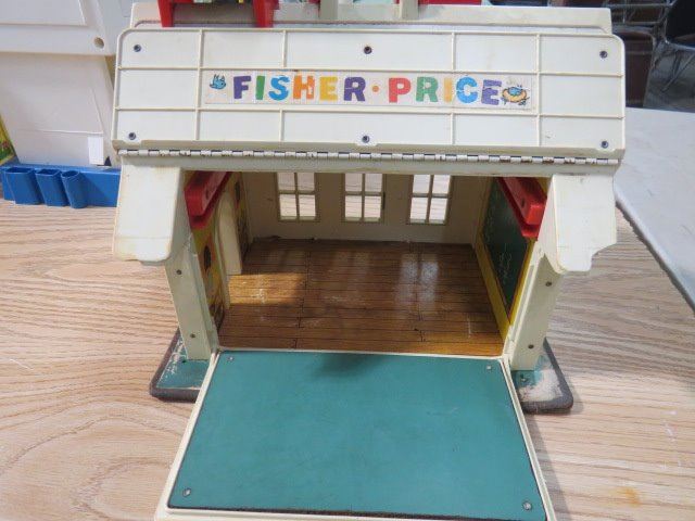 SCHOOL HOUSE AND HOSPITAL FISHER PRICE BARN AND GAS PUMP