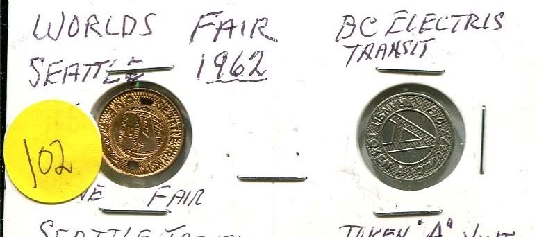 Seattle Worlds Fair Transit Token (1962) and BC Electric Transit Token