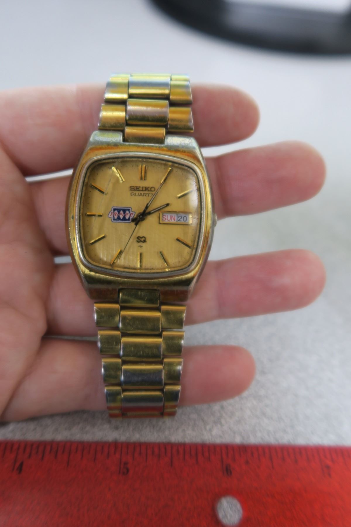 SEIKO quartz watch has month & day (face is cracked)