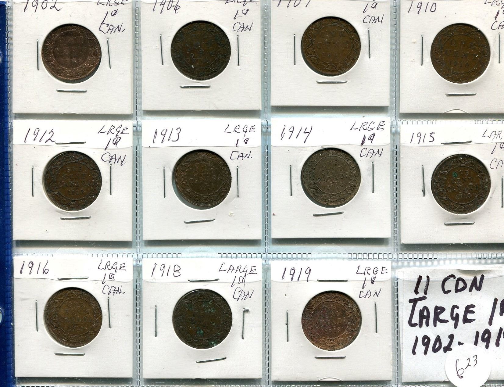 SET OF 11 LARGE CDN PENNIES - 1902/06/07/1910/12-16/18/19