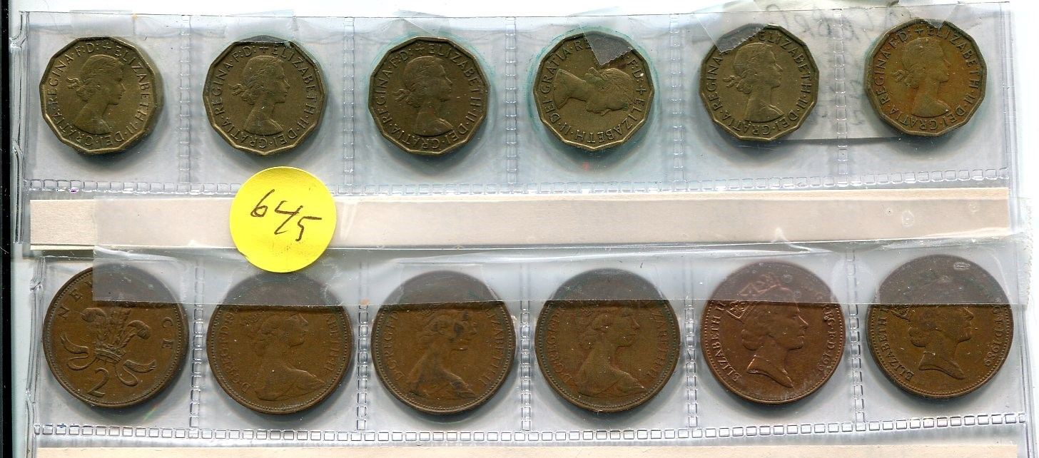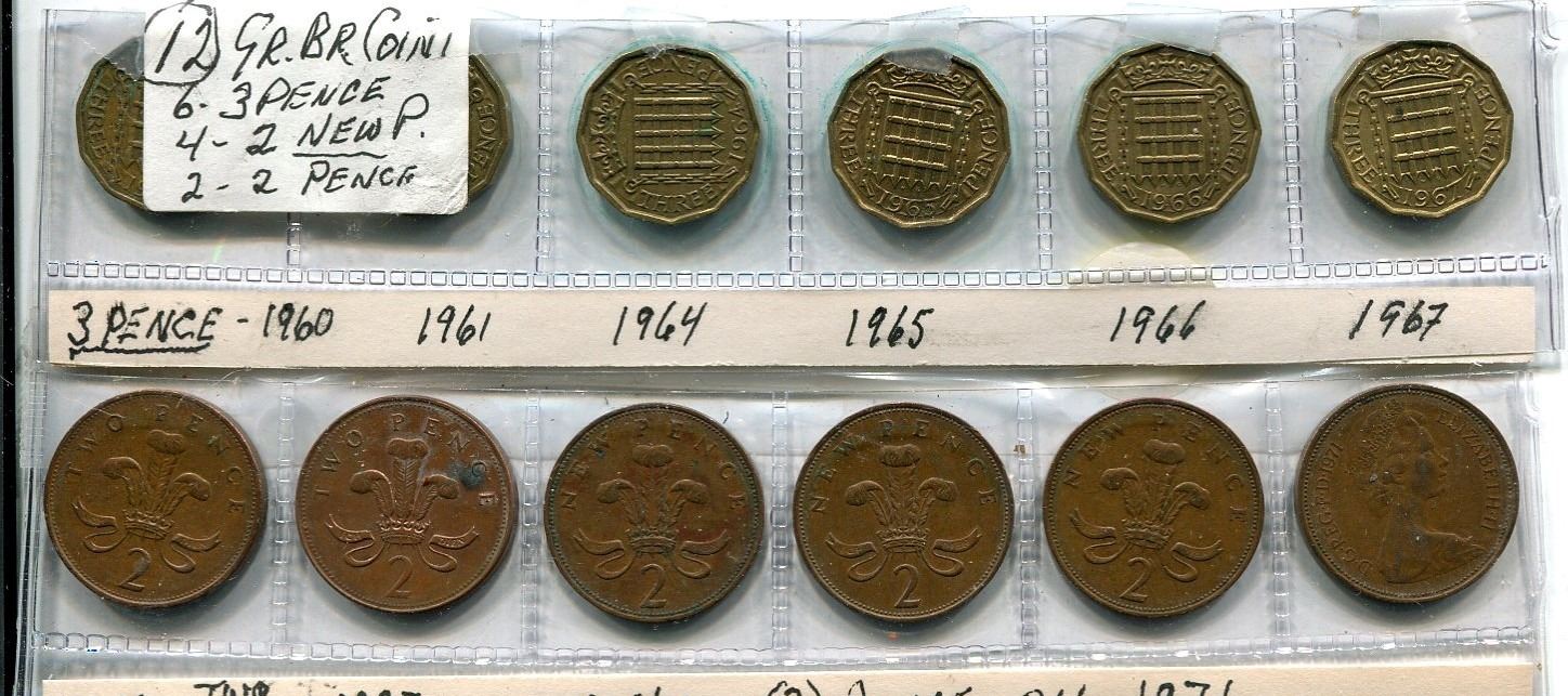 SET OF 12 GREAT BRITAIN COINS 6X 3 PENCE 1960 TO 67/ 2X 2 PENCE 89 AND 97 + 4 NEW PENCE (2) 1971