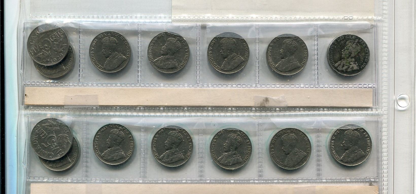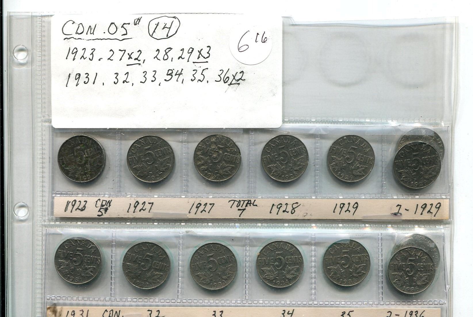 SET OF 14 5 CENT COINS 1923, 2X '27, 28, 3X '29, 31-35, 2X 36