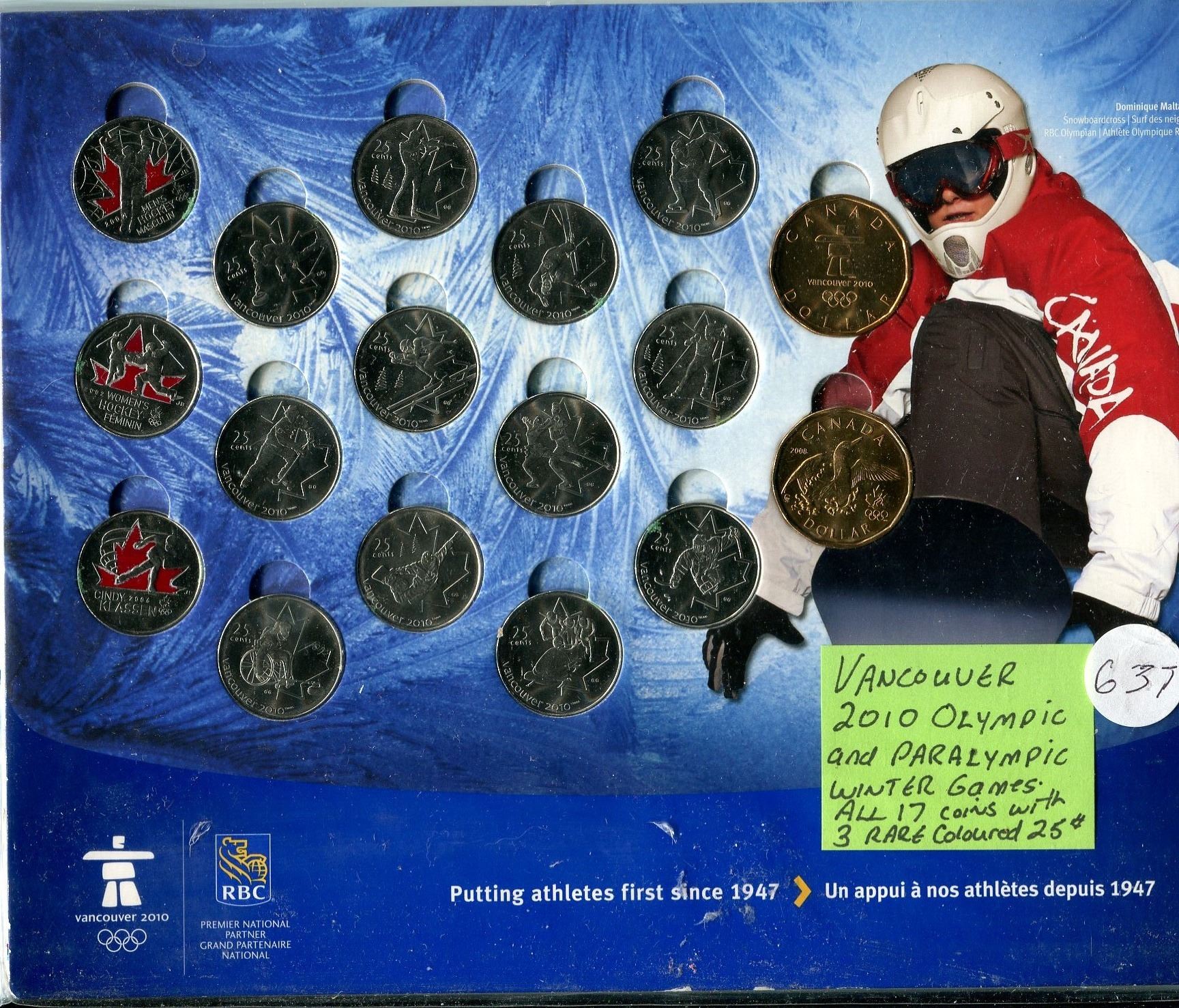 SET OF 17 COINS 15X 25 CENTS AND 2 1.00 LOONIES - 2010 VANCOUVER OLYMPICS