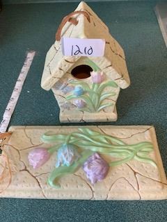 SET OF 2 OUTDOOR ART BIRDHOUSE AND FLOWER/TULIP PLAQUE