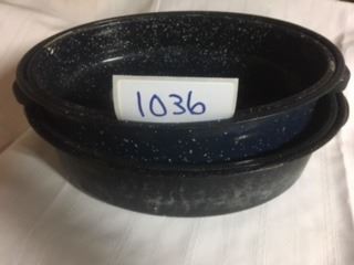 SET OF 2 VINTAGE ENAMEL ROASTERS.