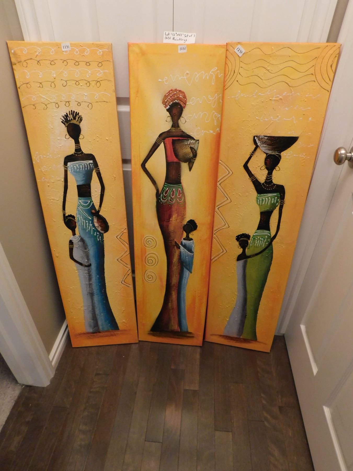 SET OF 3, 12 X 47” AFRICAN THEMED PAINTINGS