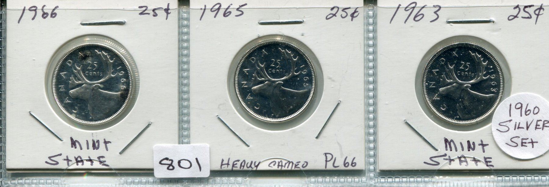 SET OF 3 CNDN 25 CENT PCS (1963, 1965, 1966) *SILVER*