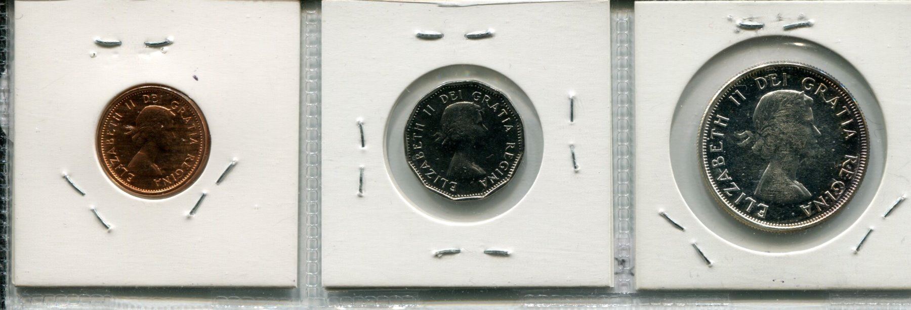SET OF 3 CNDN COINS (1963 25 CENT PC & PENNY, 1962 NICKEL)