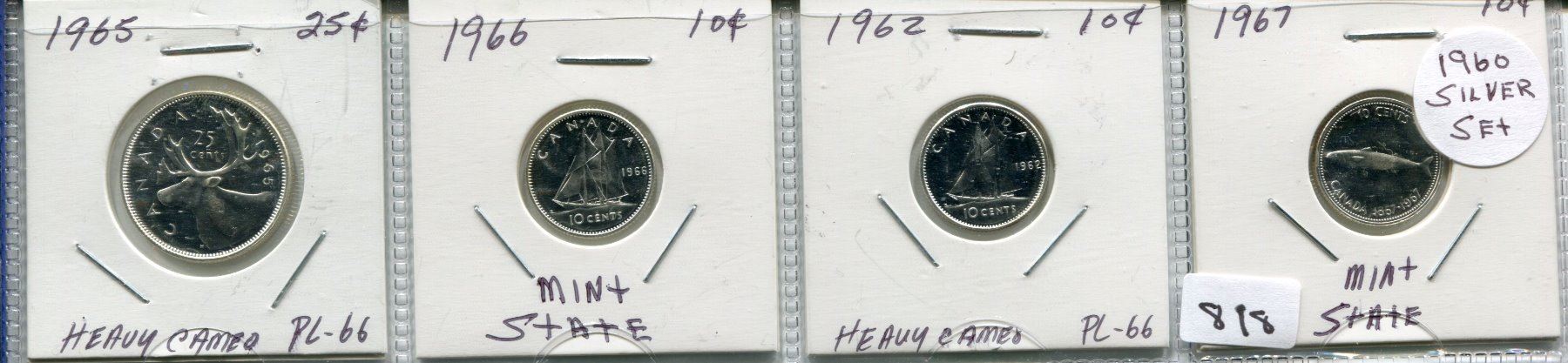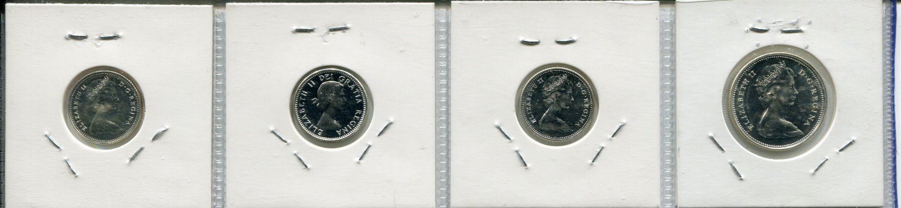 SET OF 4 CNDN COINS (1965 QUARTER, 1962, 1966, 1967 TEN CENT PCS)
