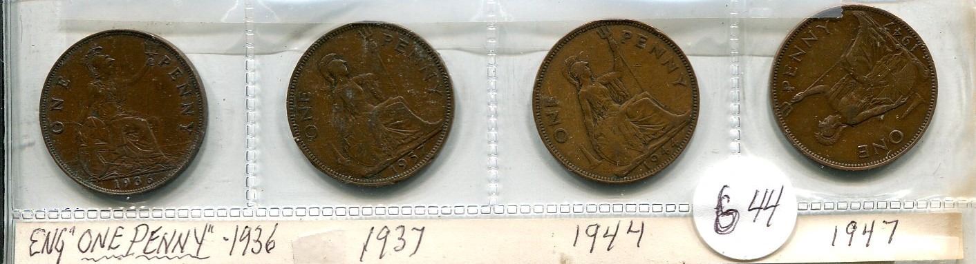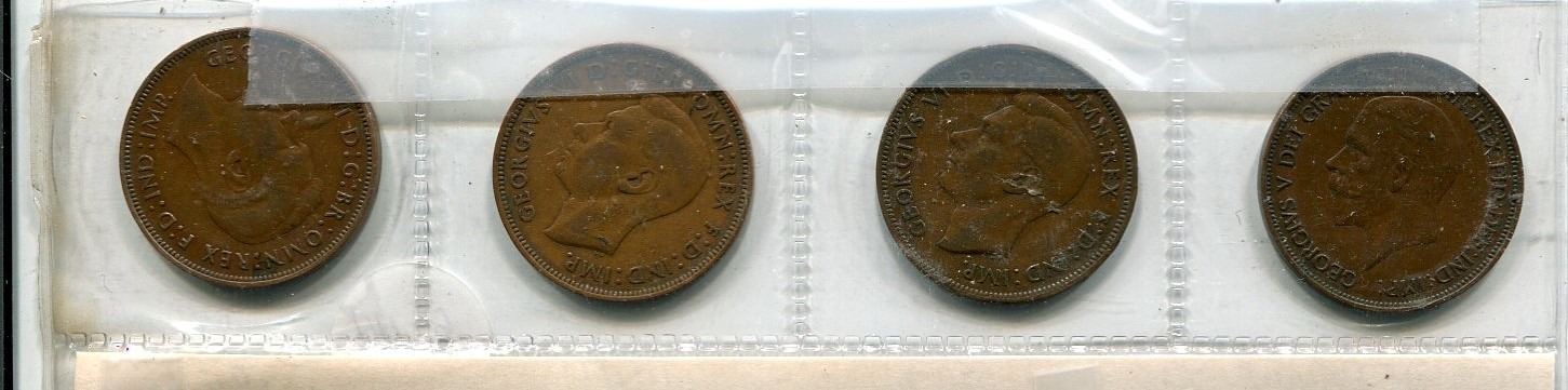 SET OF 4 LARGE ONE PENNY GREAT BRITAIN 1936/37/44/47