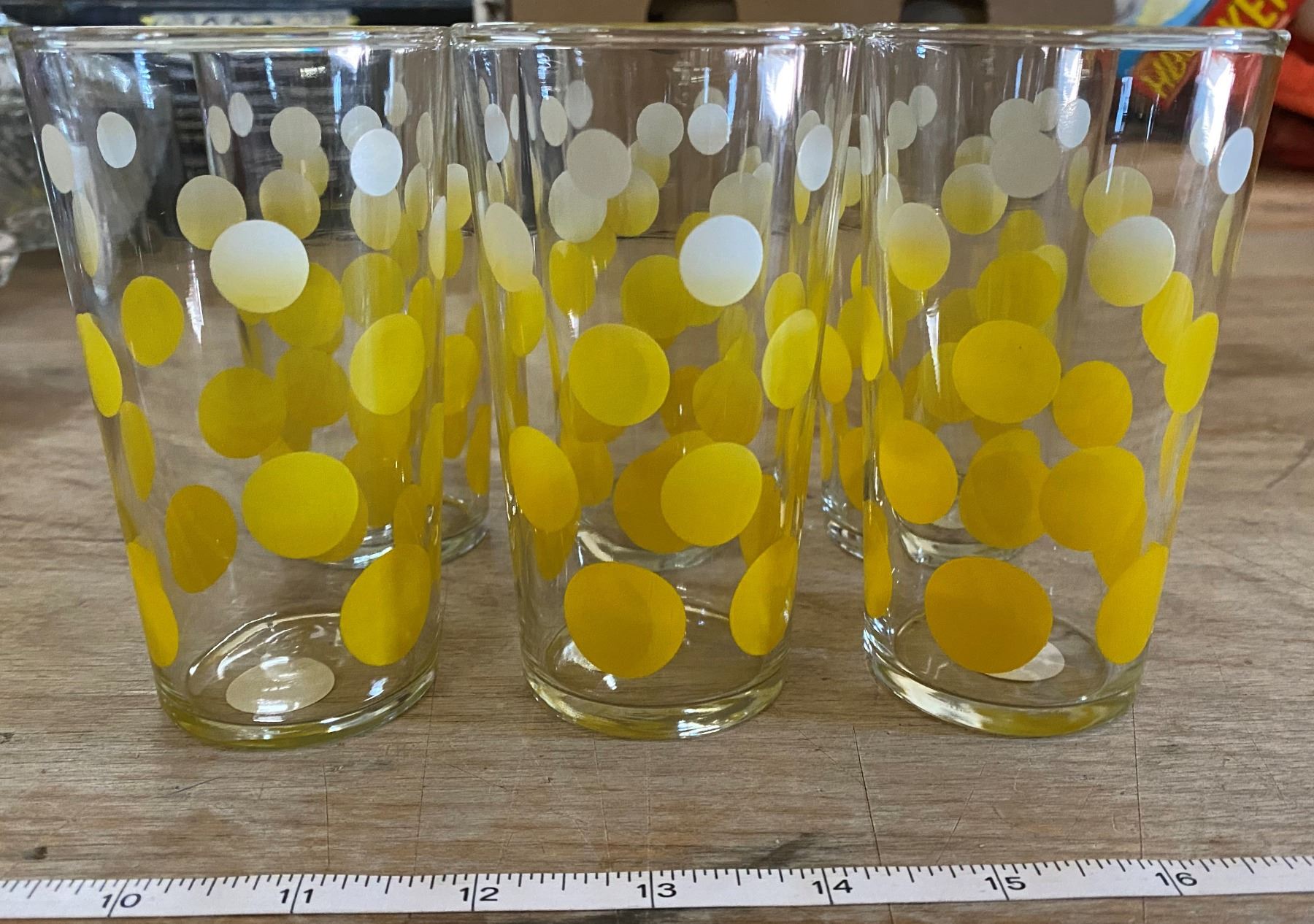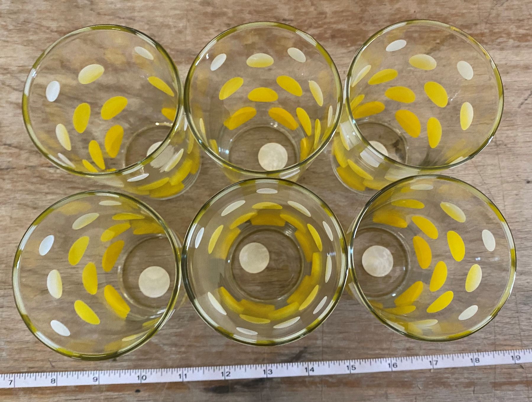SET OF 6 YELLOW POLKA DOT GLASSES