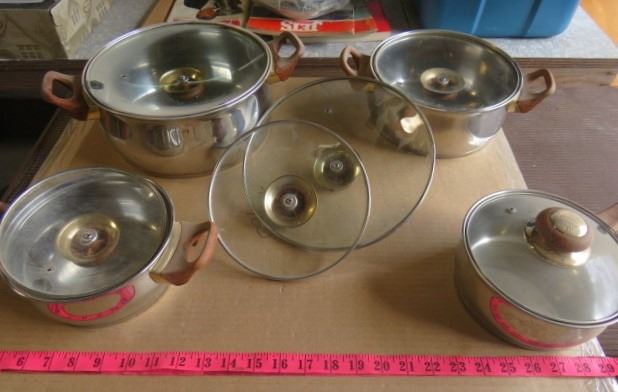 SET OF POTS (STAINLESS STEEL) *EXTRA LIDS*(DESIGNED IN GERMANY)
