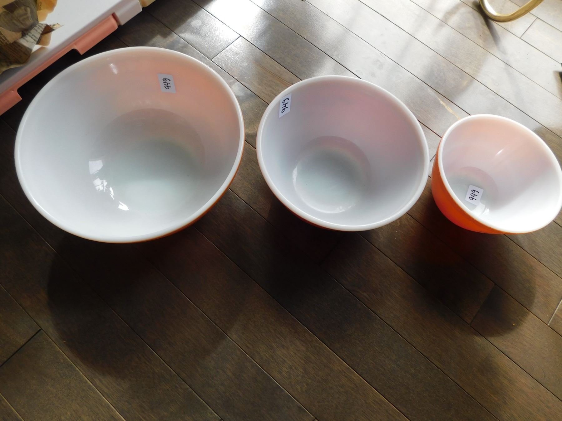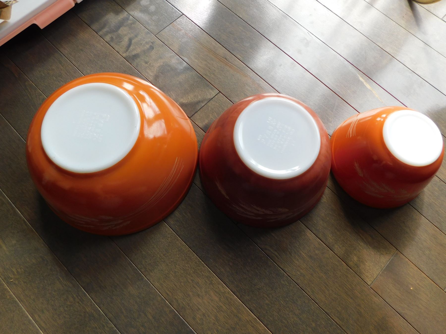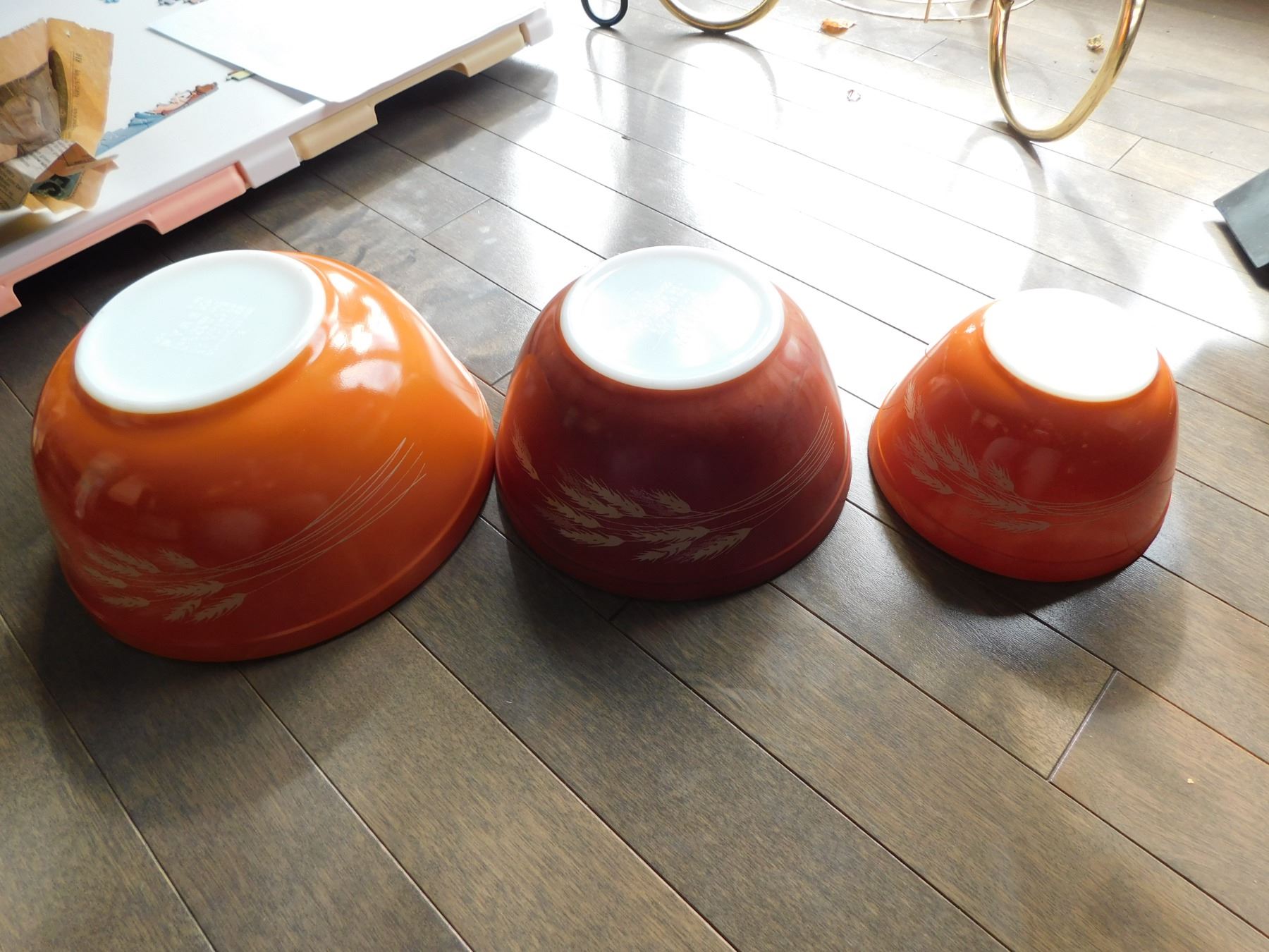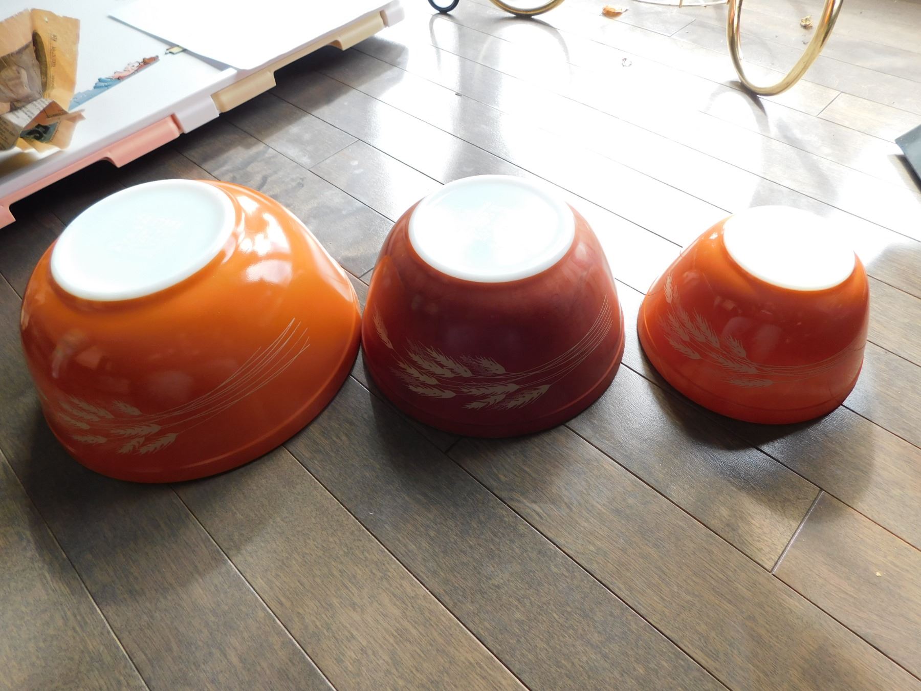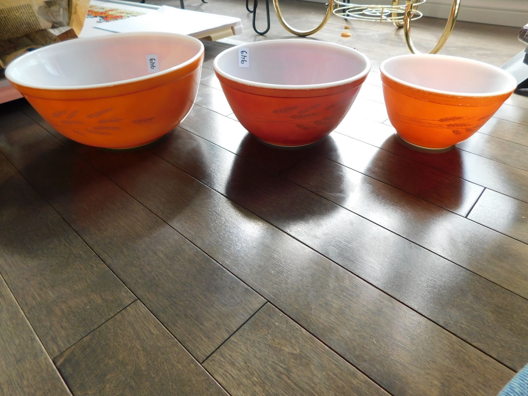 SET OF THREE PYREX, AUTUMN HARVEST, NESTING MIXING BOWLS