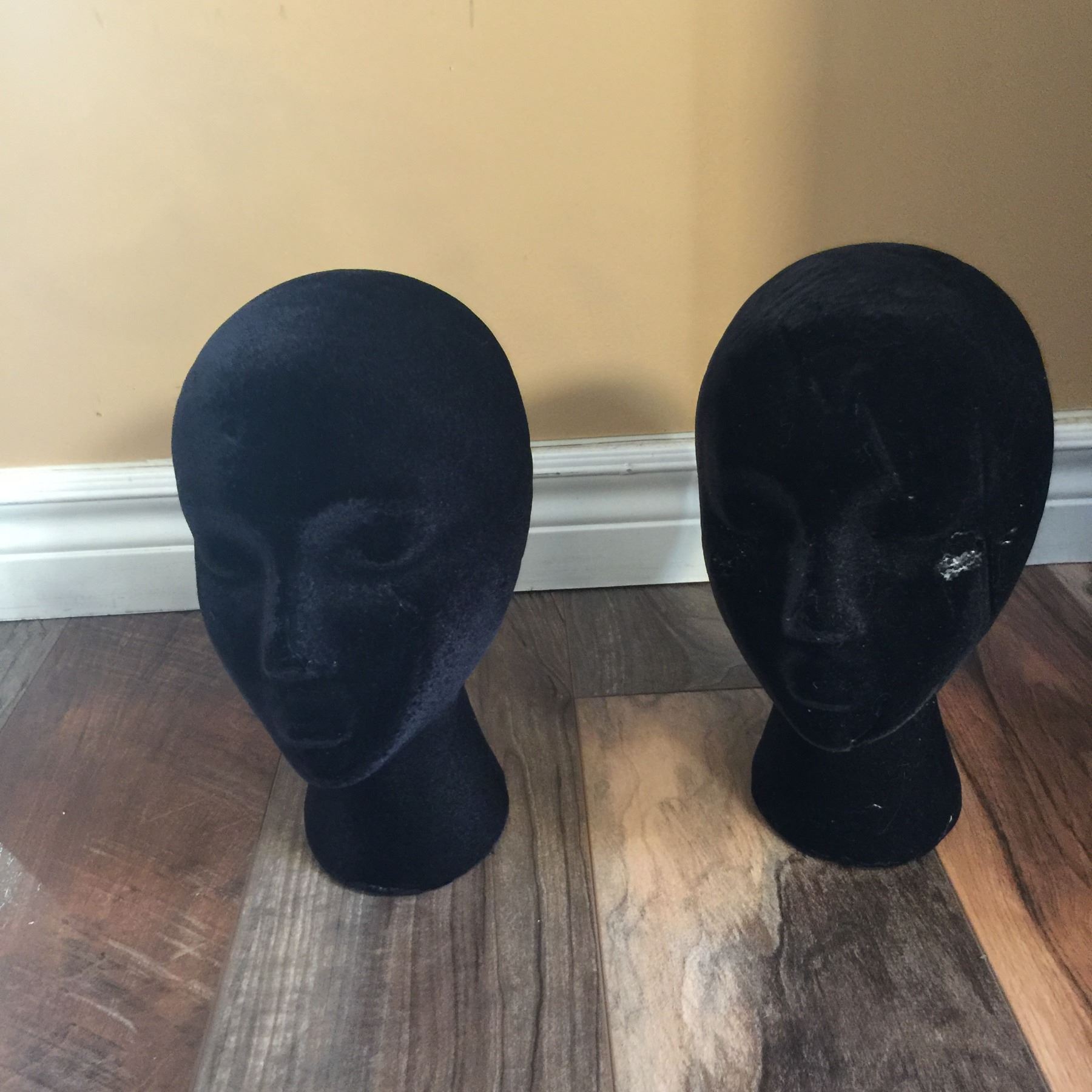 SET OF TWO BLACK VELVET DISPLAY HEADS