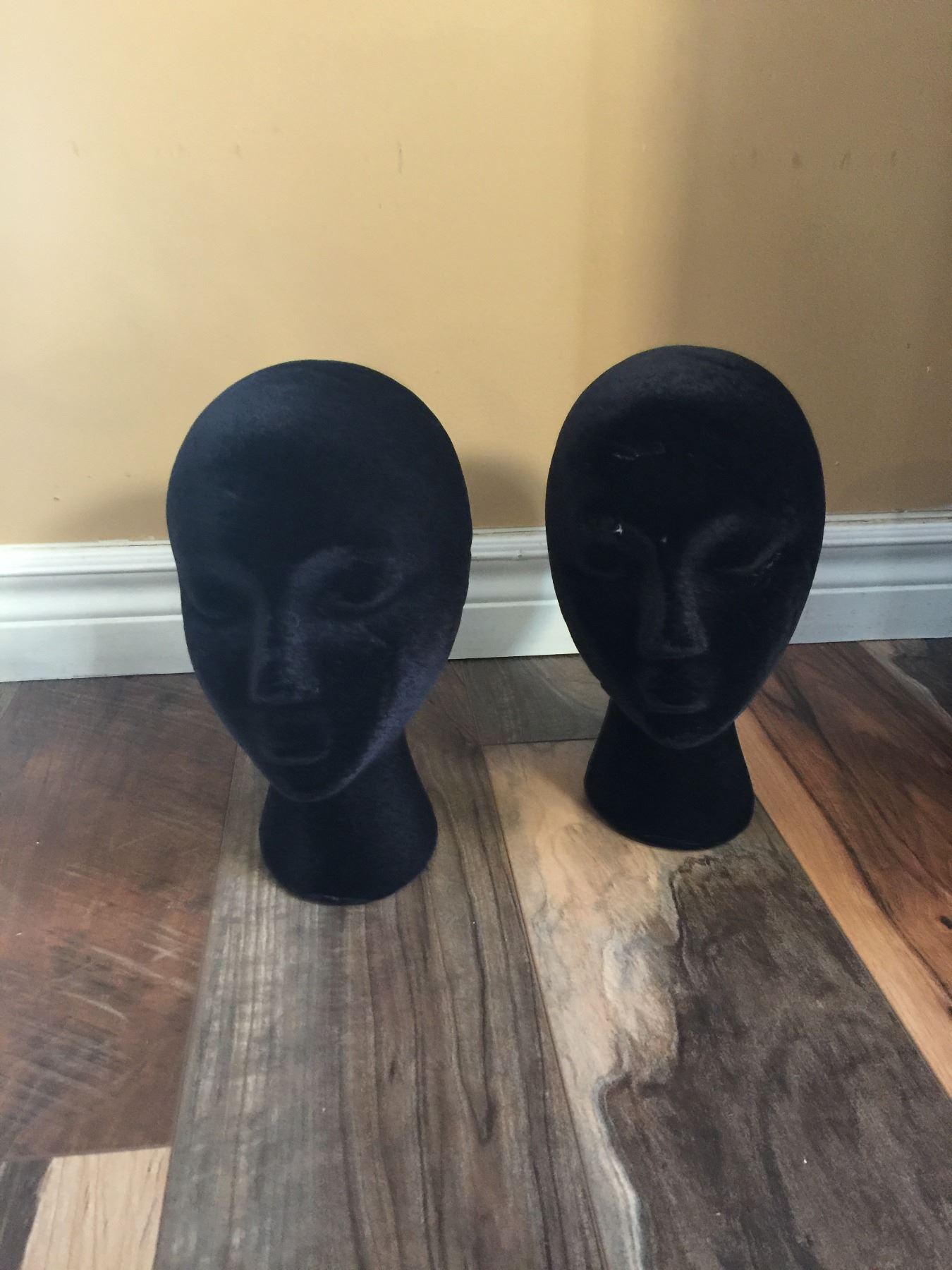 SET OF TWO BLACK VELVET DISPLAY HEADS
