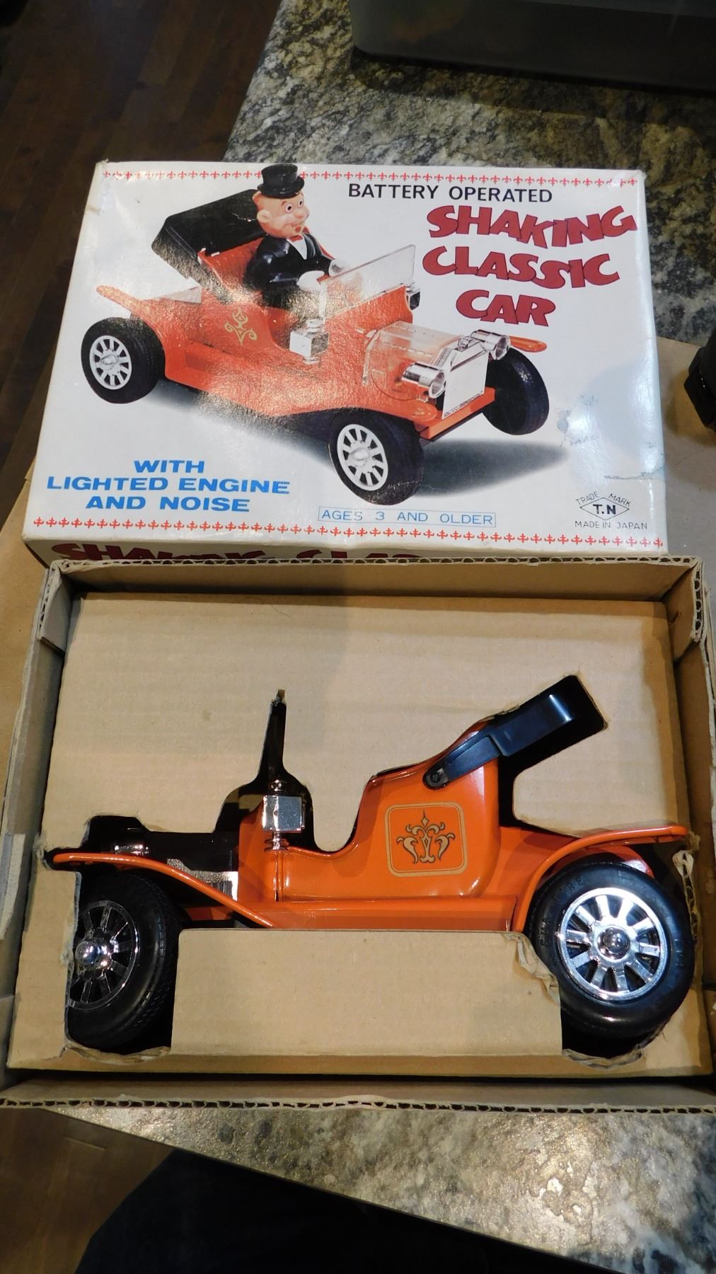 SHAKING CLASSIC CAR, JAPAN, TIN TOY, UNUSED IN BOX