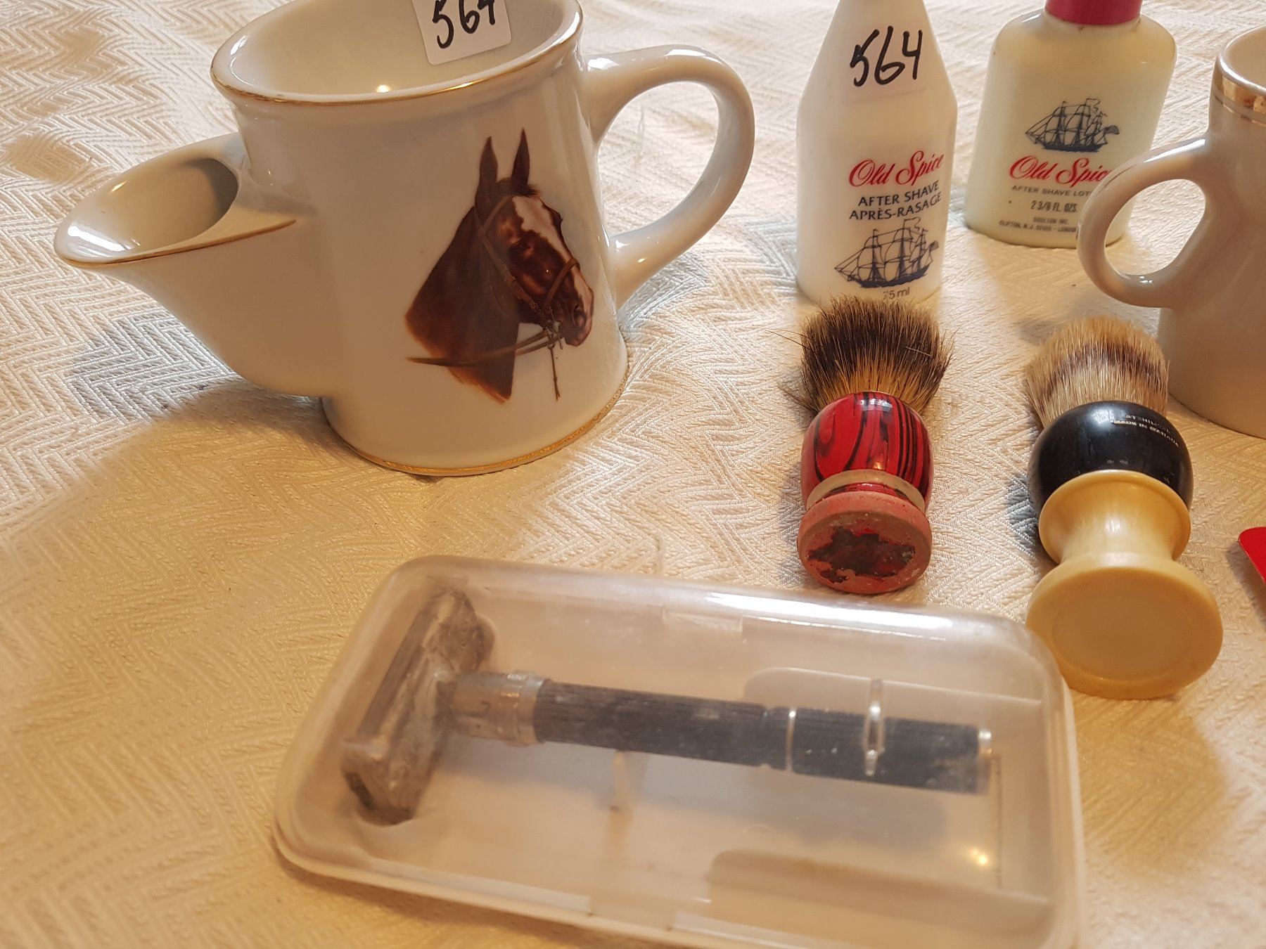 SHAVING RELATED LOT (MUGS, BRUSHES, ETC..)