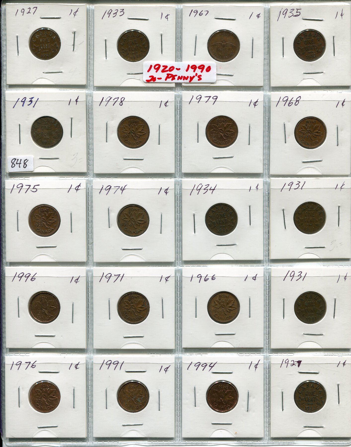 SHEET OF 20 CNDN 1 CENT PCS (1920s-1990s)