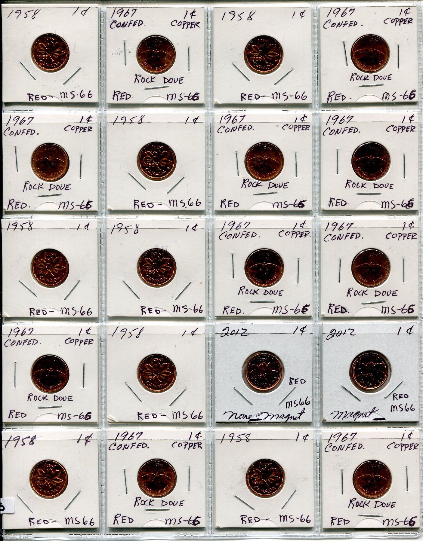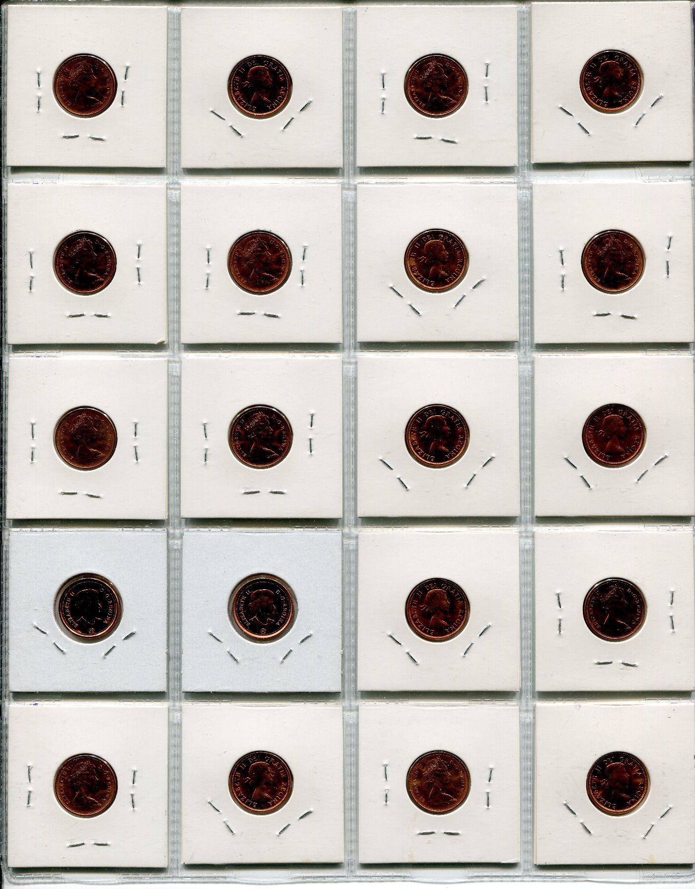 SHEET OF 20 CNDN PENNIES 1958 TO 2012