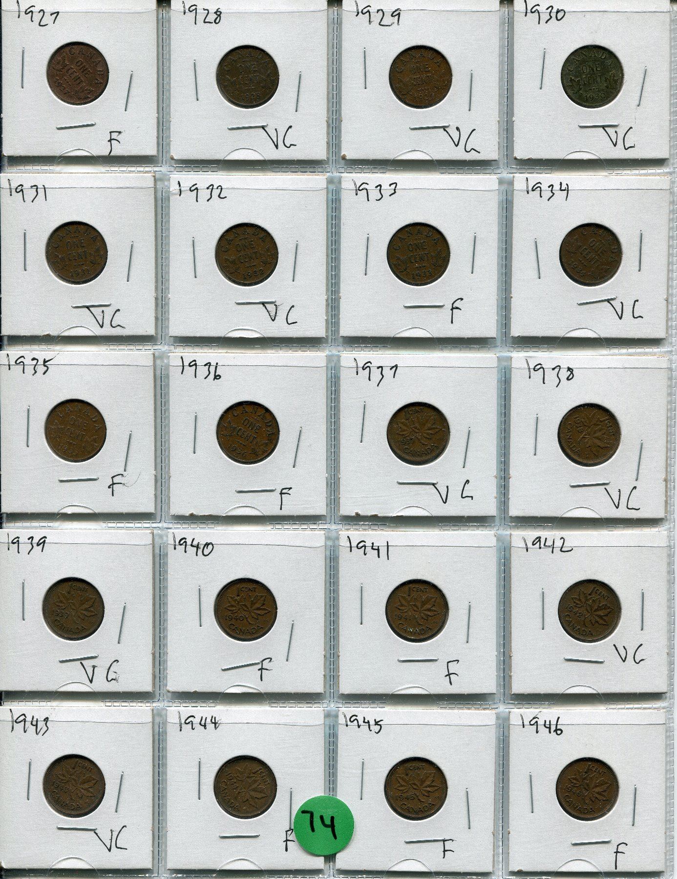 SHEET OF 20 CNDN PENNIES FROM 1927-1946