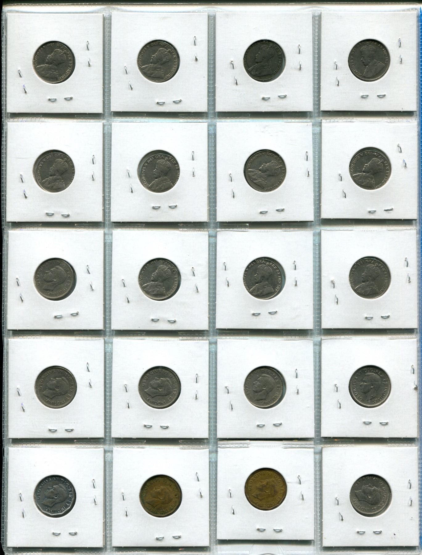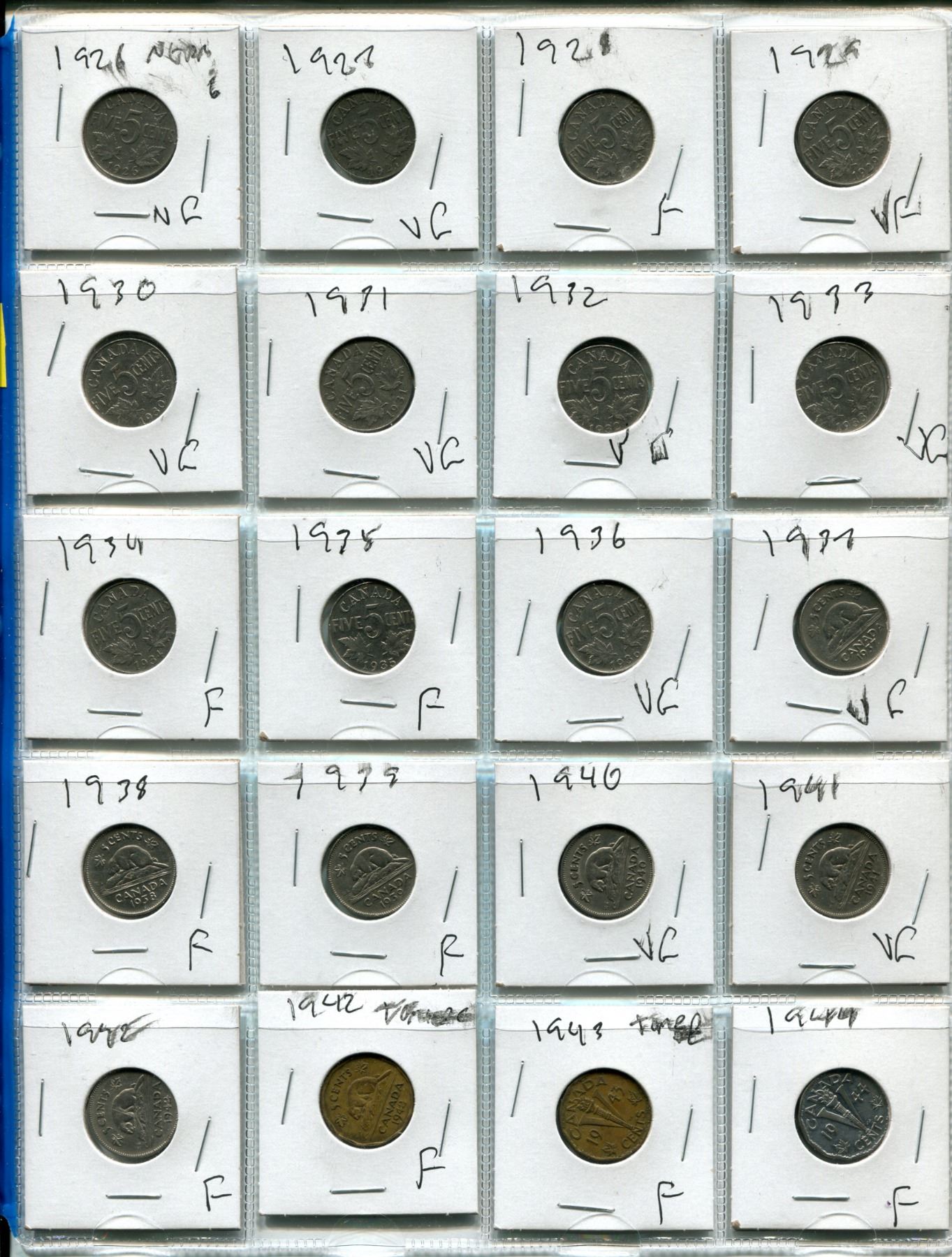 Sheet of 20 Different Canadian Nickels (1926-1944)