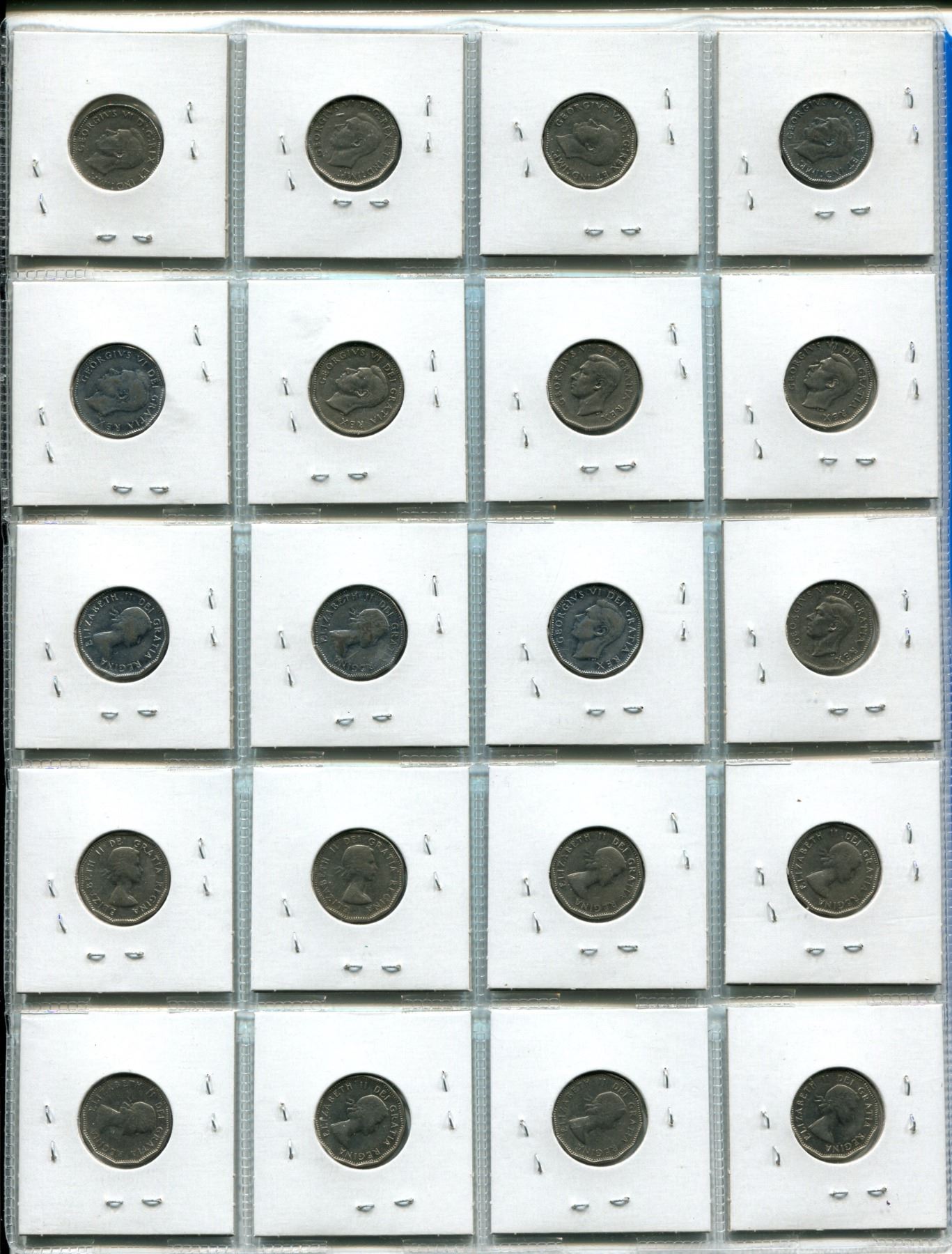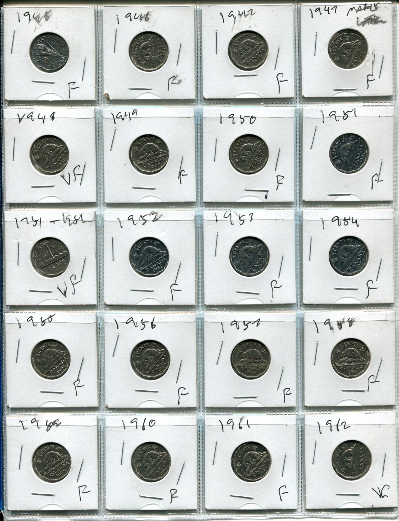 Sheet of 20 Different Canadian Nickels (1945-1962)