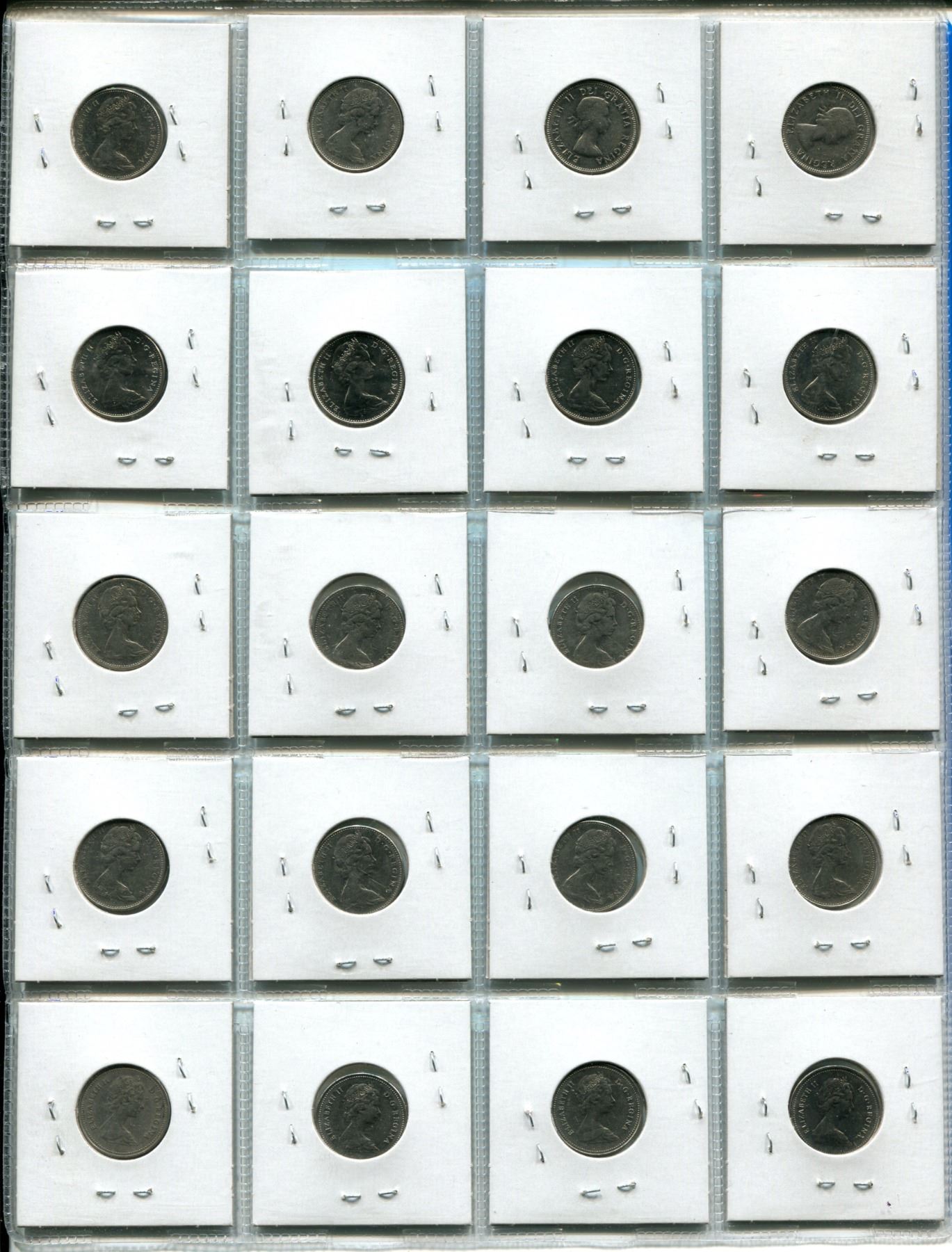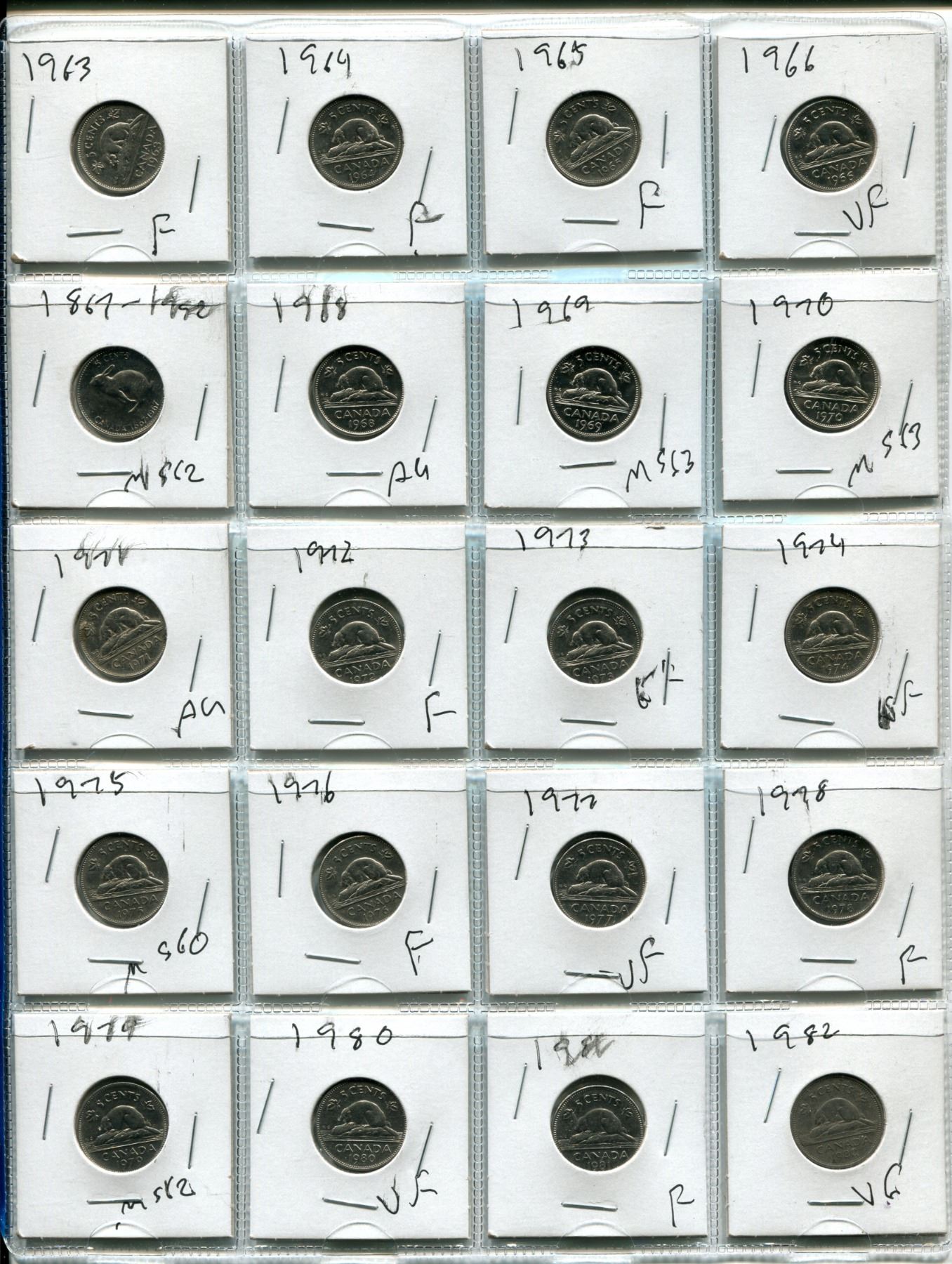 Sheet of 20 Different Canadian Nickels (1963-1982)