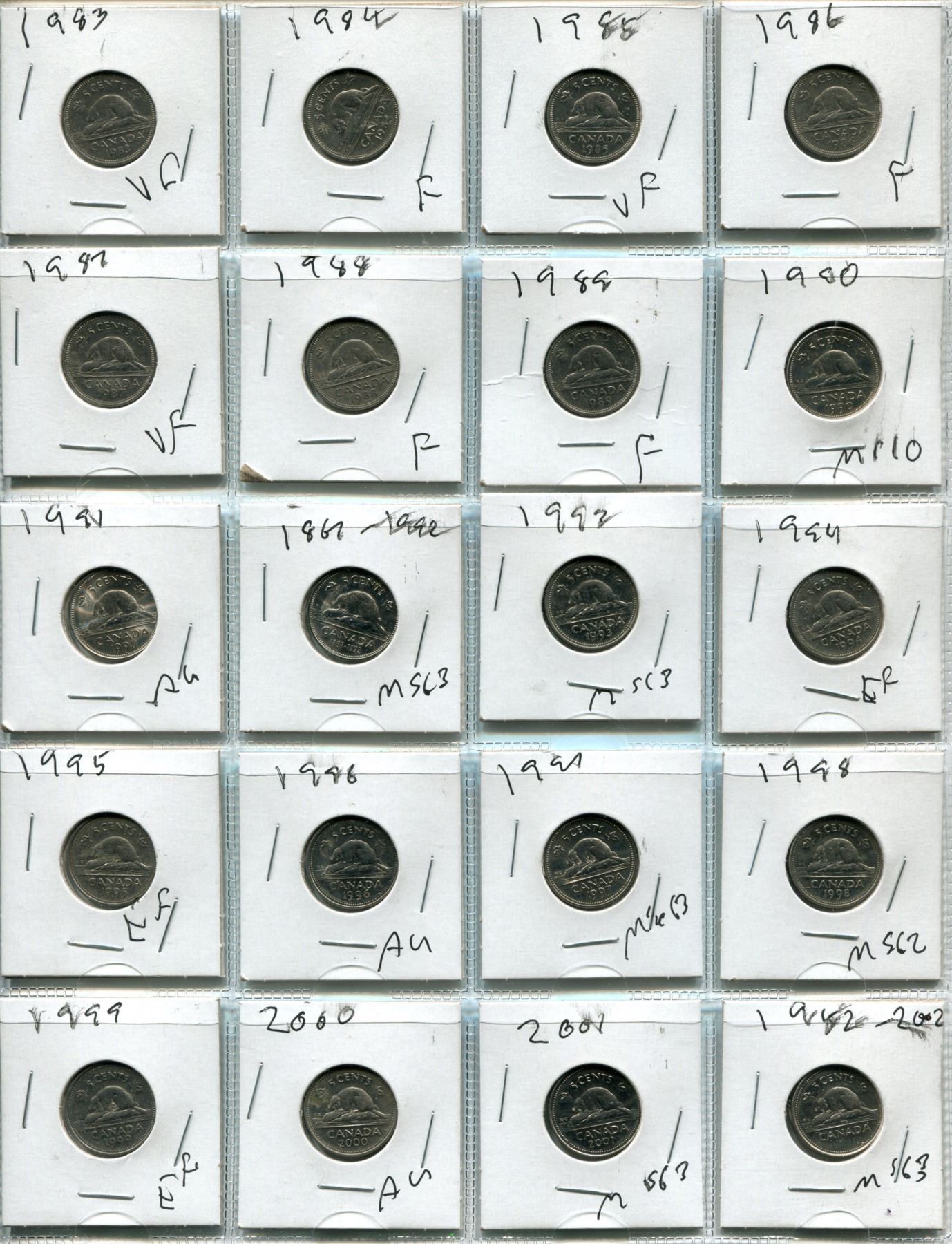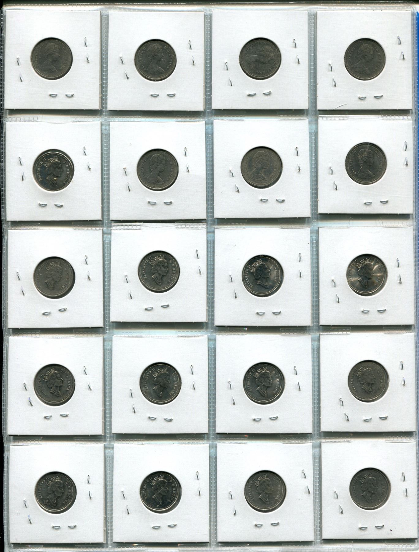 Sheet of 20 Different Canadian Nickels (1982-2001)