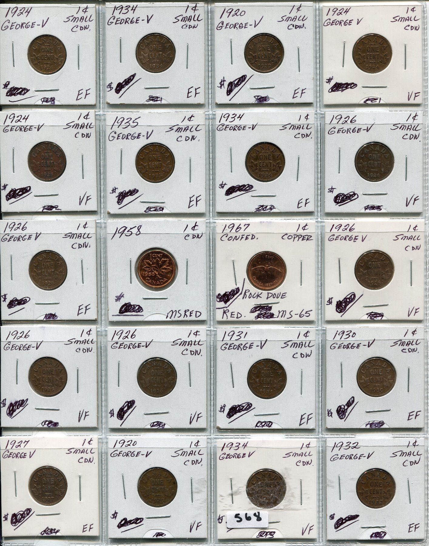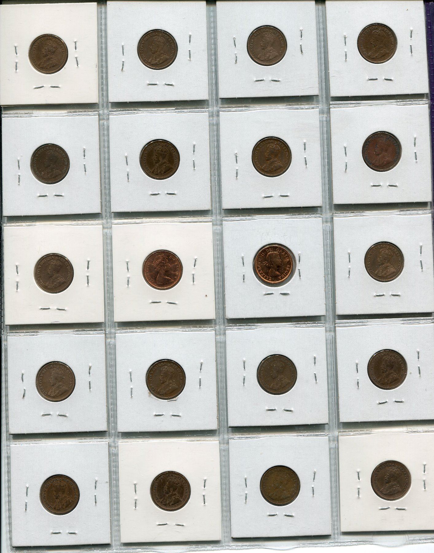 SHEET OF 2O CNDN PENNIES 1920 TO 1967