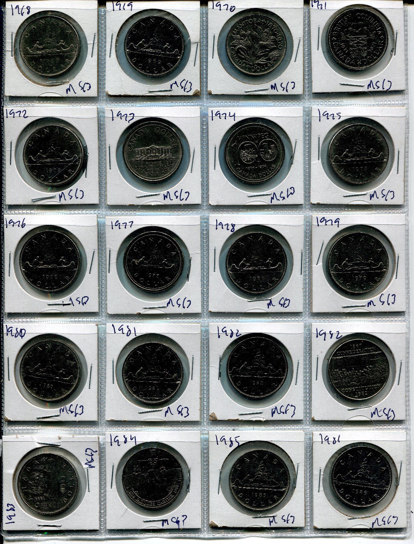 SHEET OF CNDN $1 PCS *1968 TO 1985* (QTY 20)