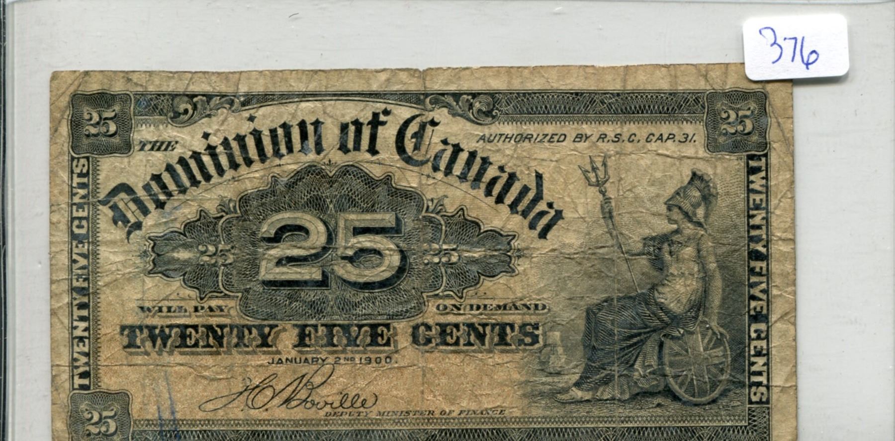 Shinplaster 1900 Canada 25 Cents Boville Signature