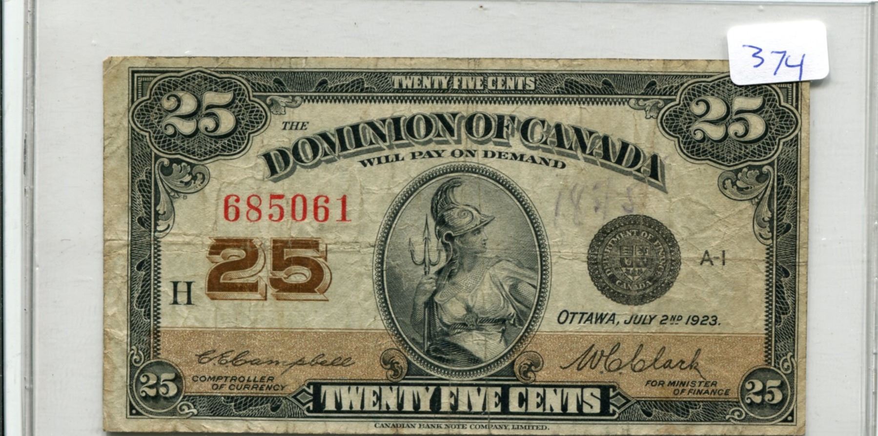 Shinplaster 1923 Canada 25 Cent Campbell/Clark Signatures