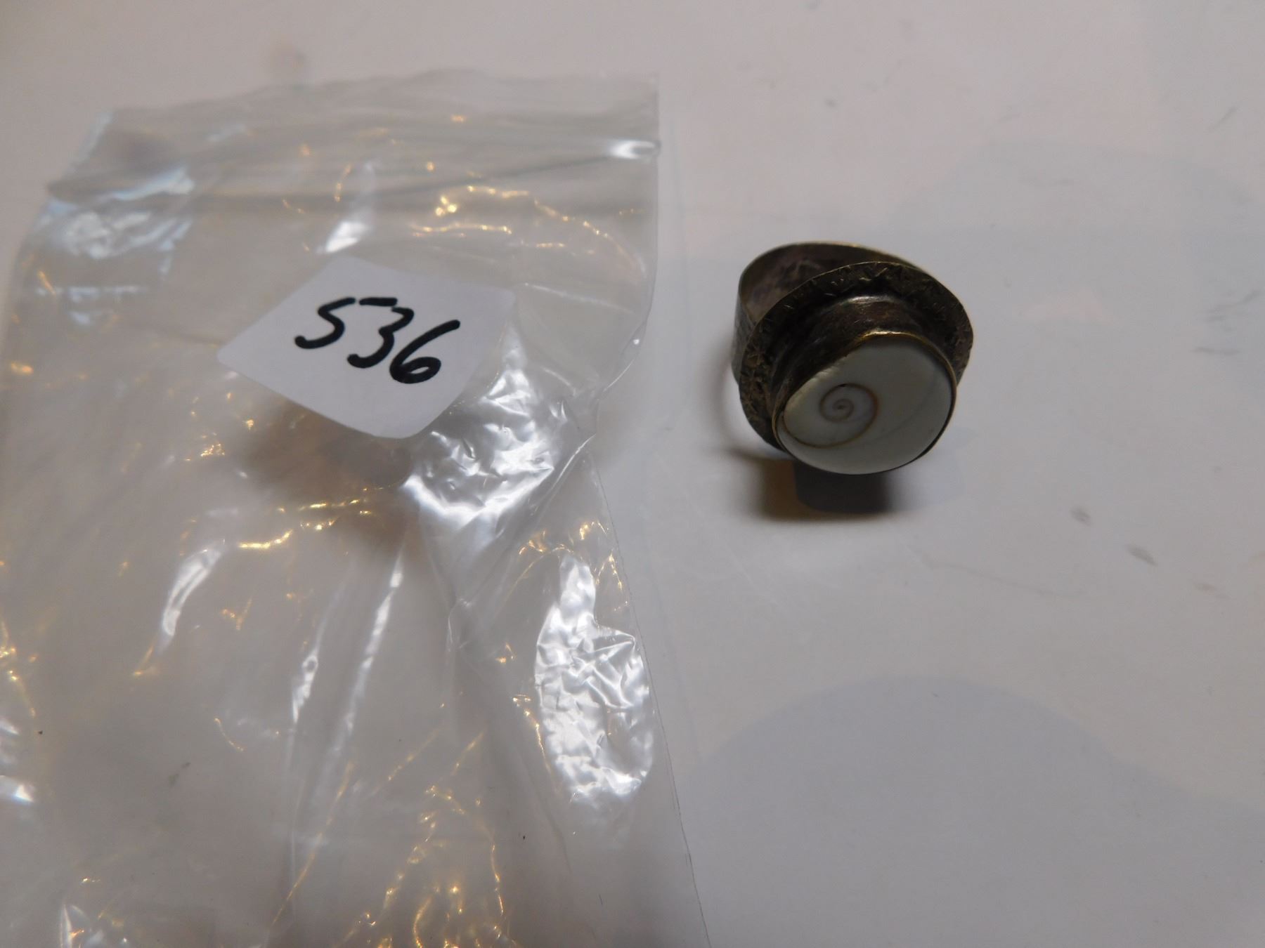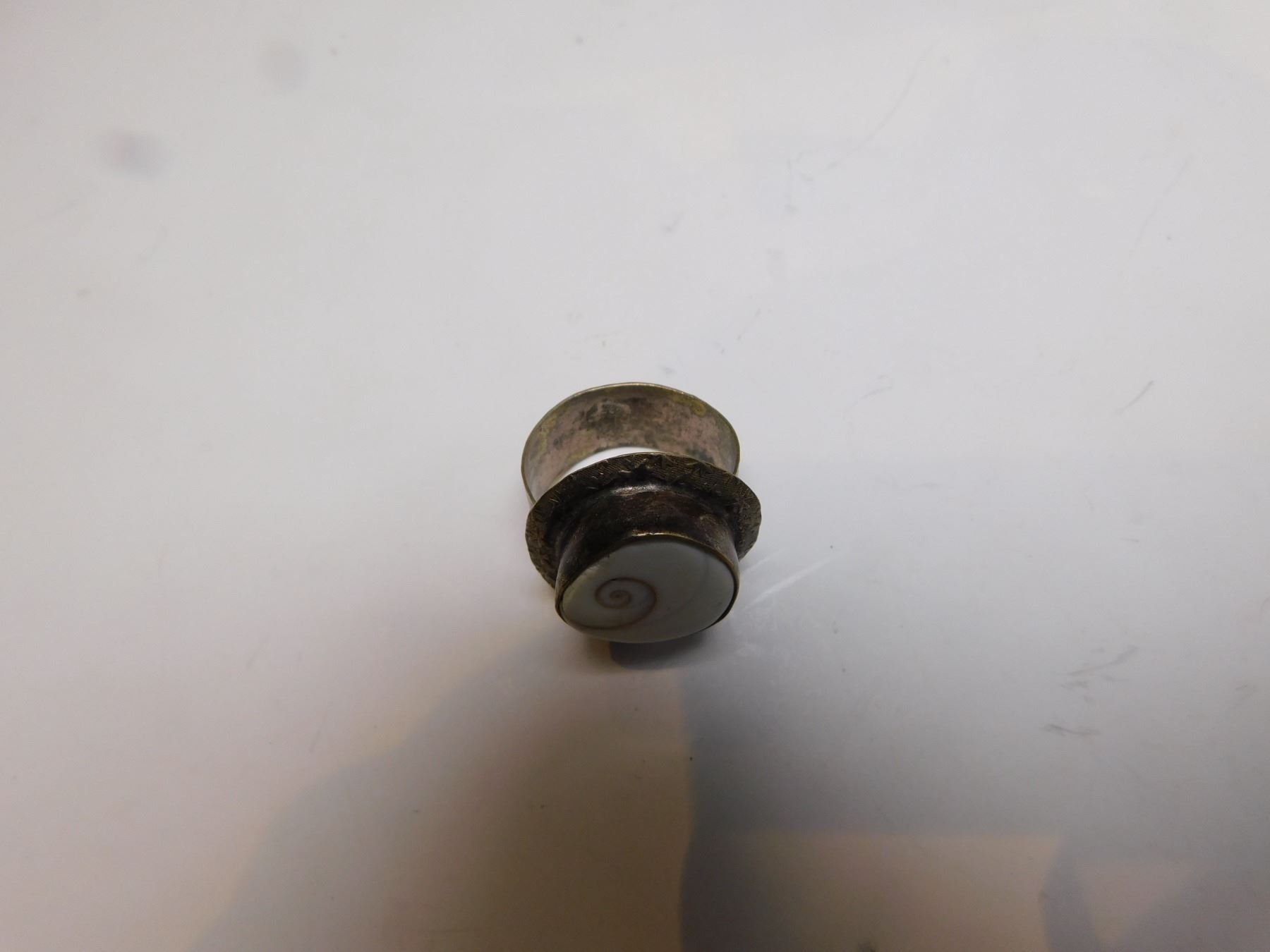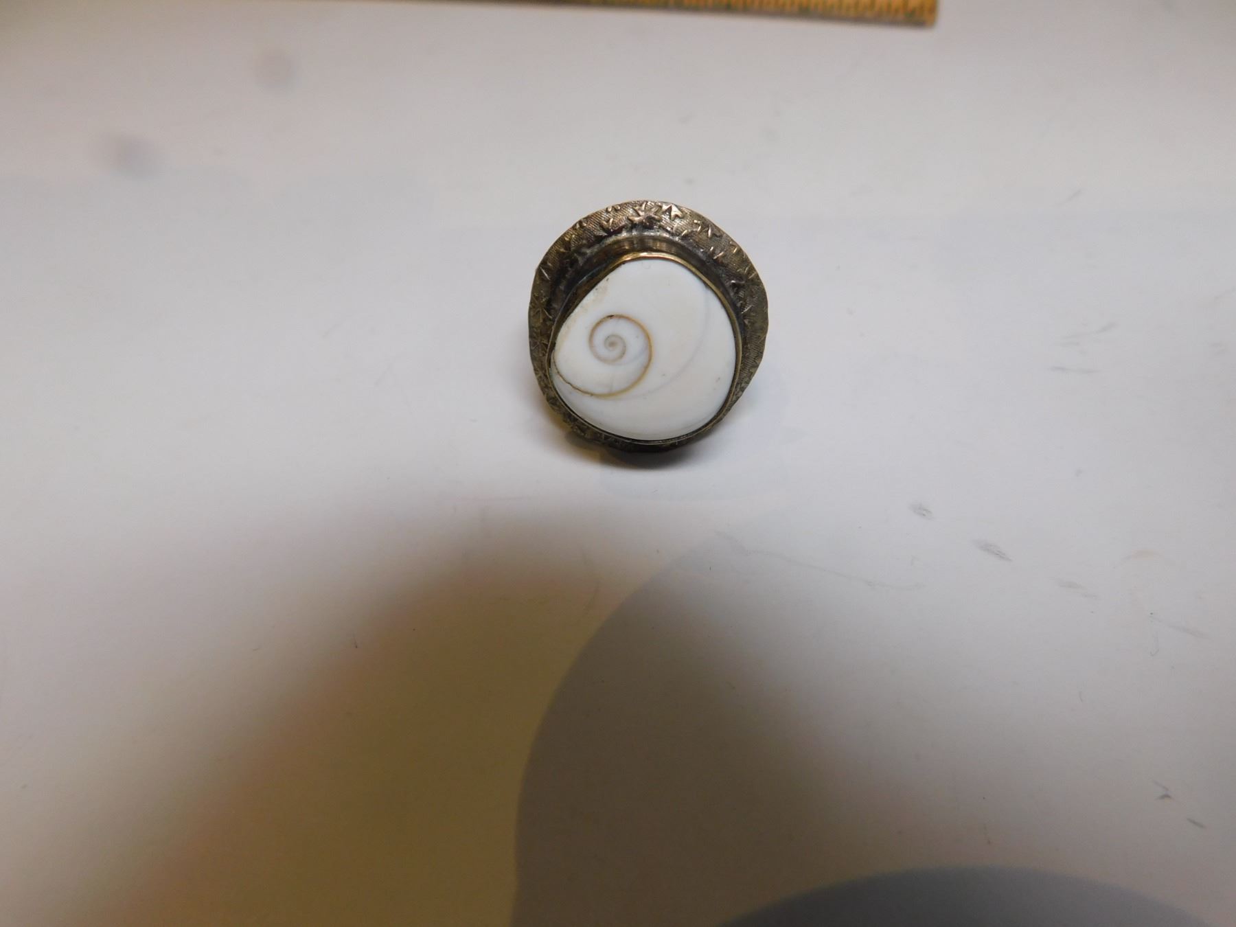 SHIVA EYE OPERCULUM SHELL RING IN STERLING