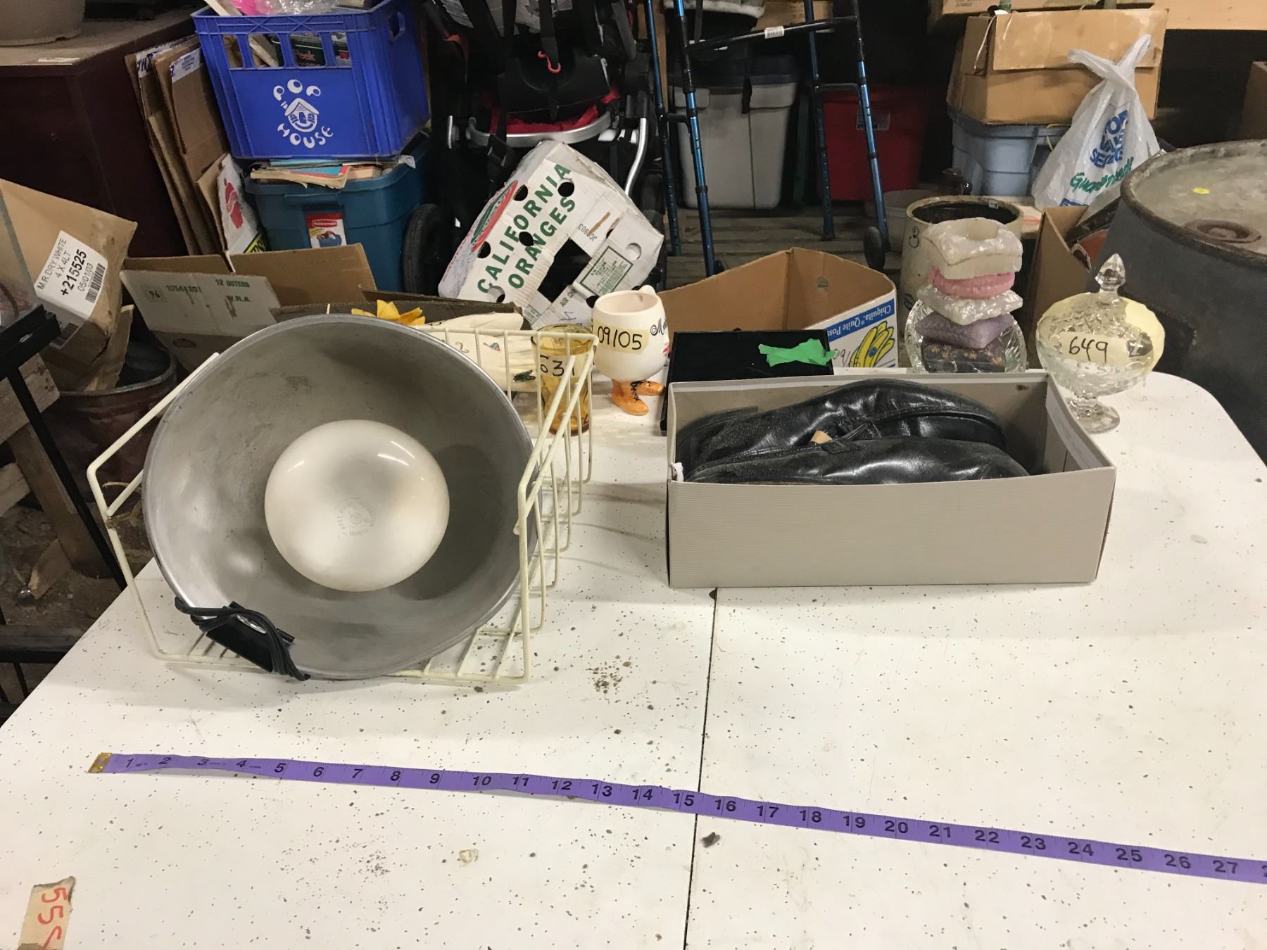SHOES + CHAIRS (2) WORK LIGHT + STORAGE RACK