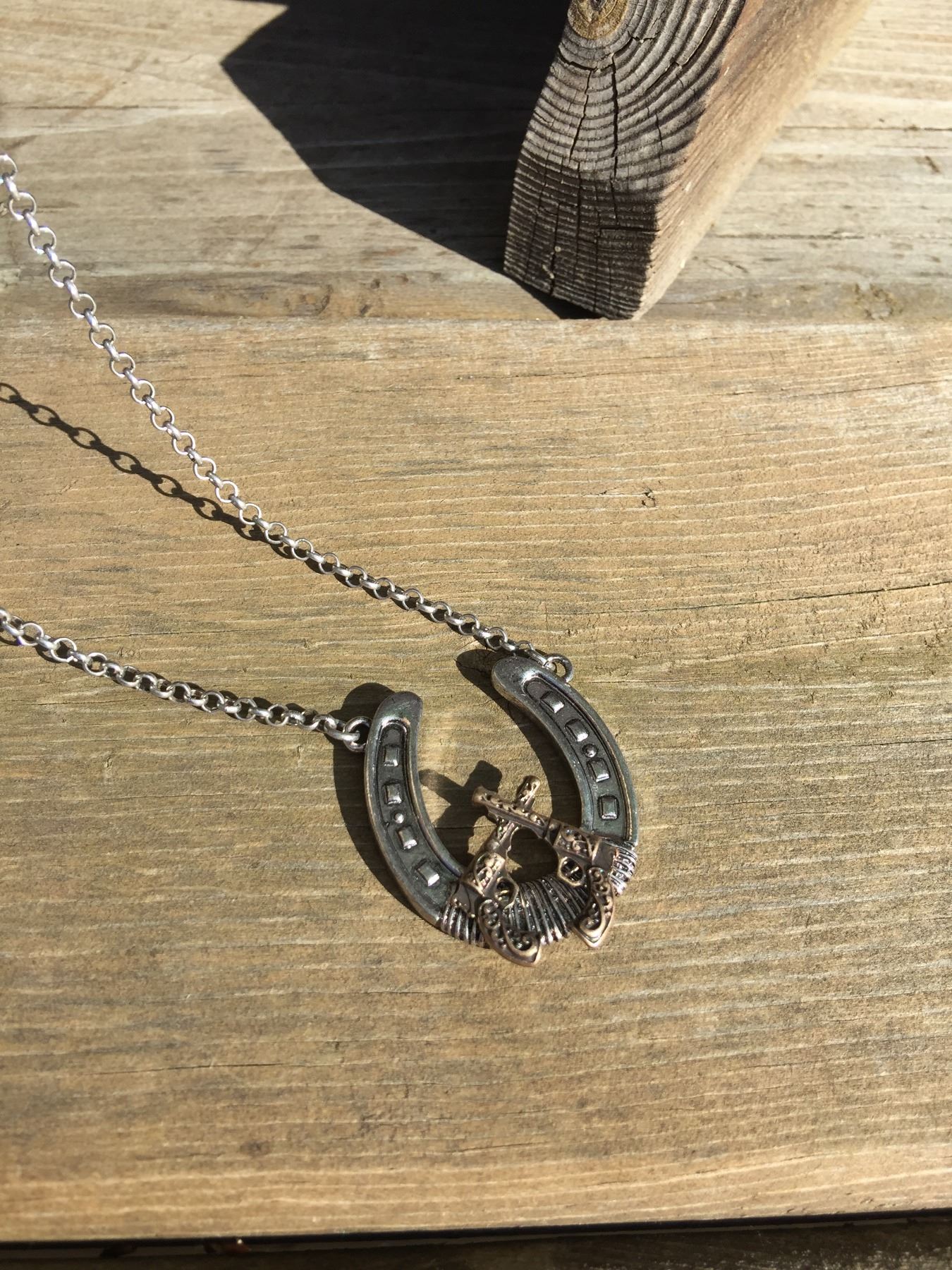 SILVER HORSESHOE/DOUBLE PISTOL NECKLACE/EARRING SET