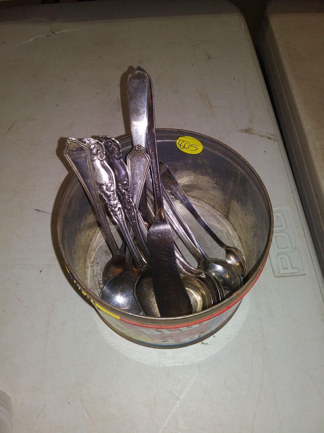 SILVER PLATED CUTLERY IN BLUE RIBBON TIN