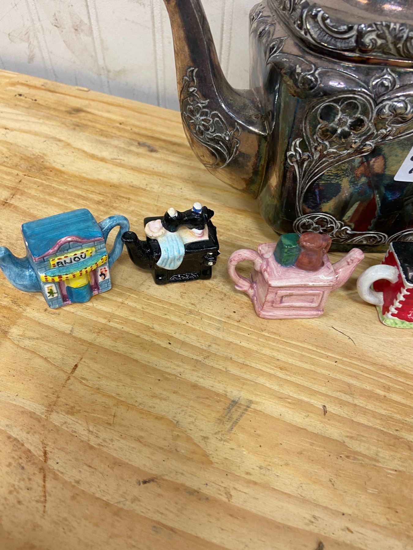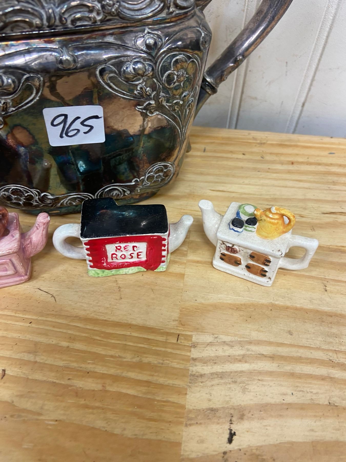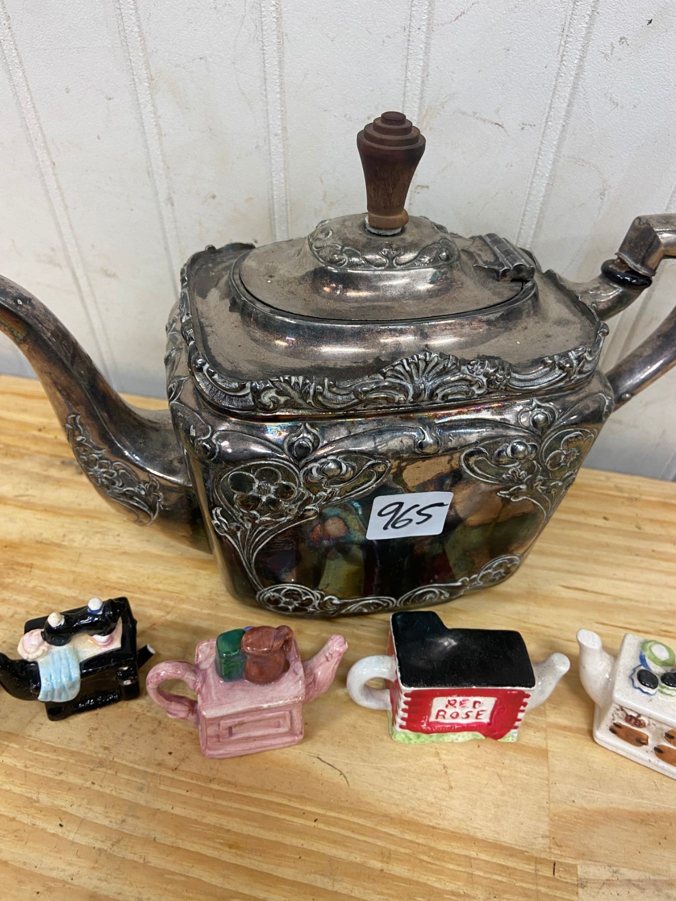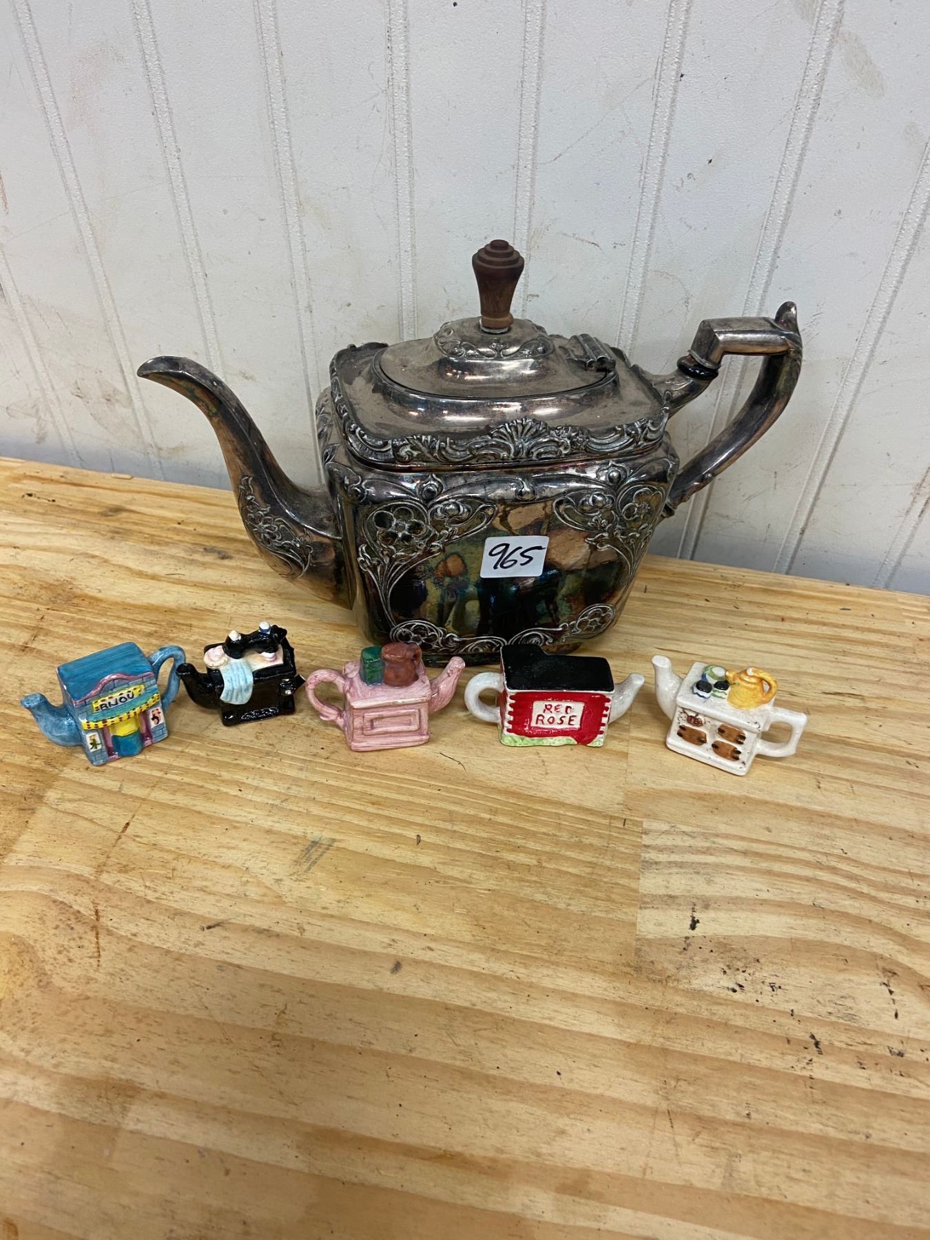 SILVER PLATED TEA POT & 5 RED ROSE CERAMIC PIECES
