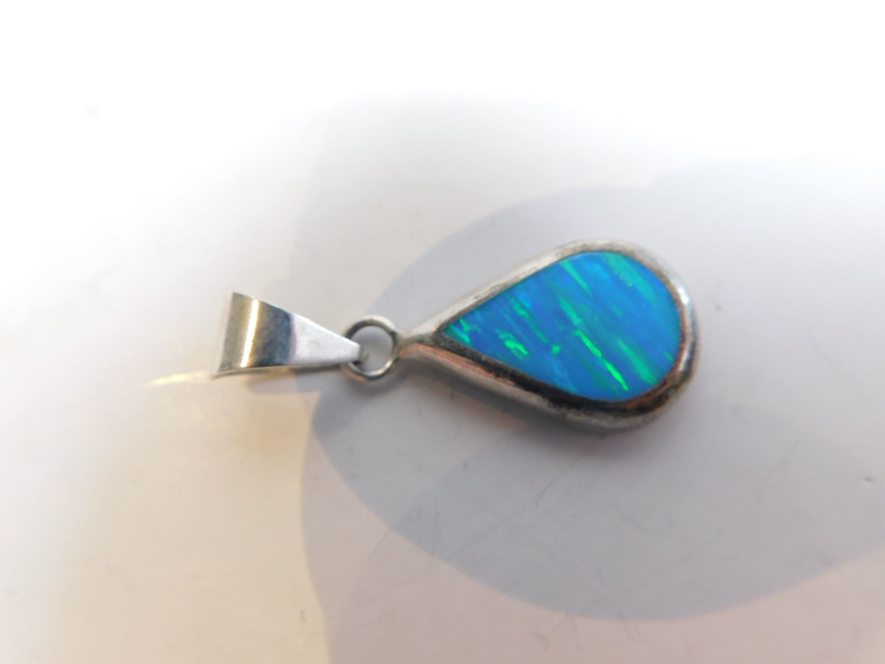 SILVER TONE FIRE OPAL PENDANT MARKED MEXICO