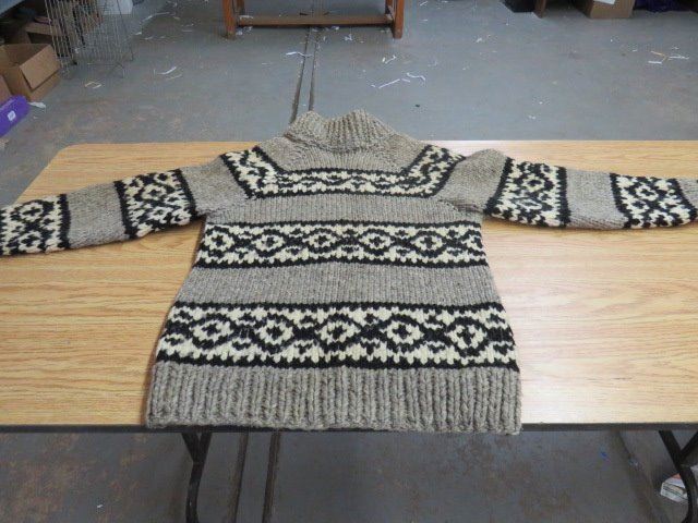 SIWASH SWEATER *NEVER WORN* *EXPERT HAND KNIT* (POCKETS IN FRONT; MENS LARGE)