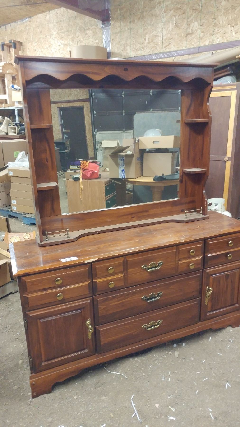 SIX COMPARTMENT DRESSER WITH MIRROR (71" X 60" X 17")