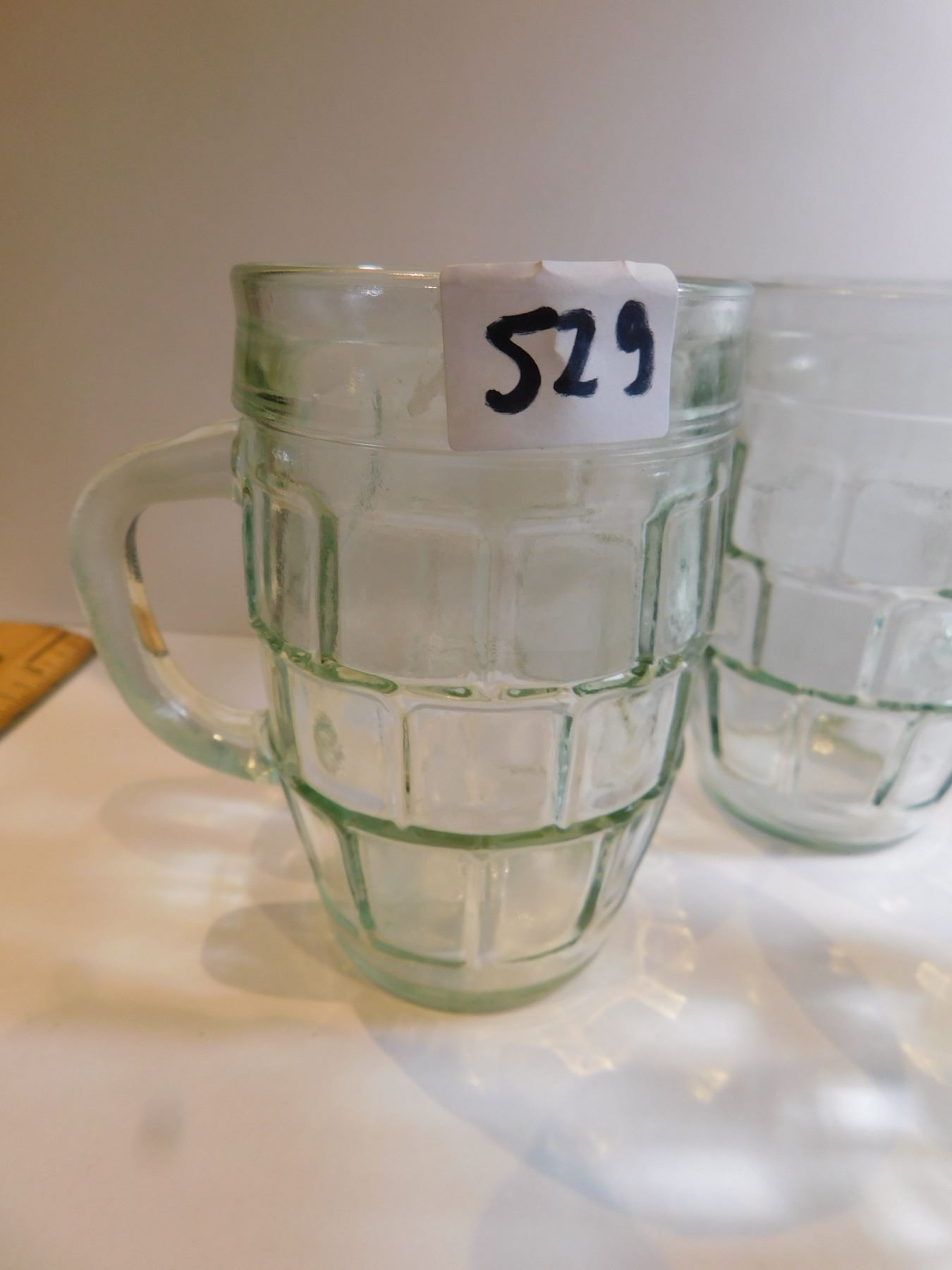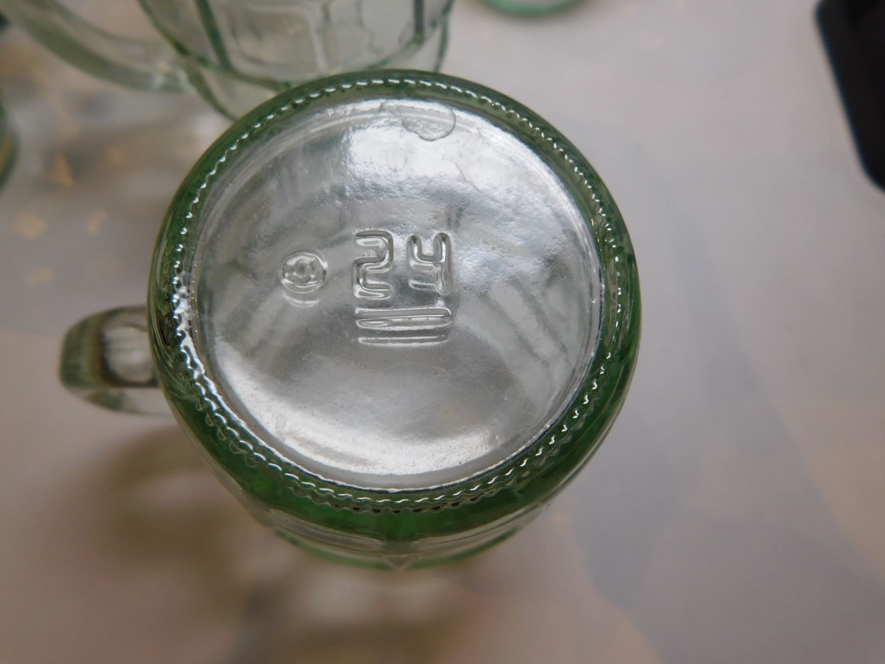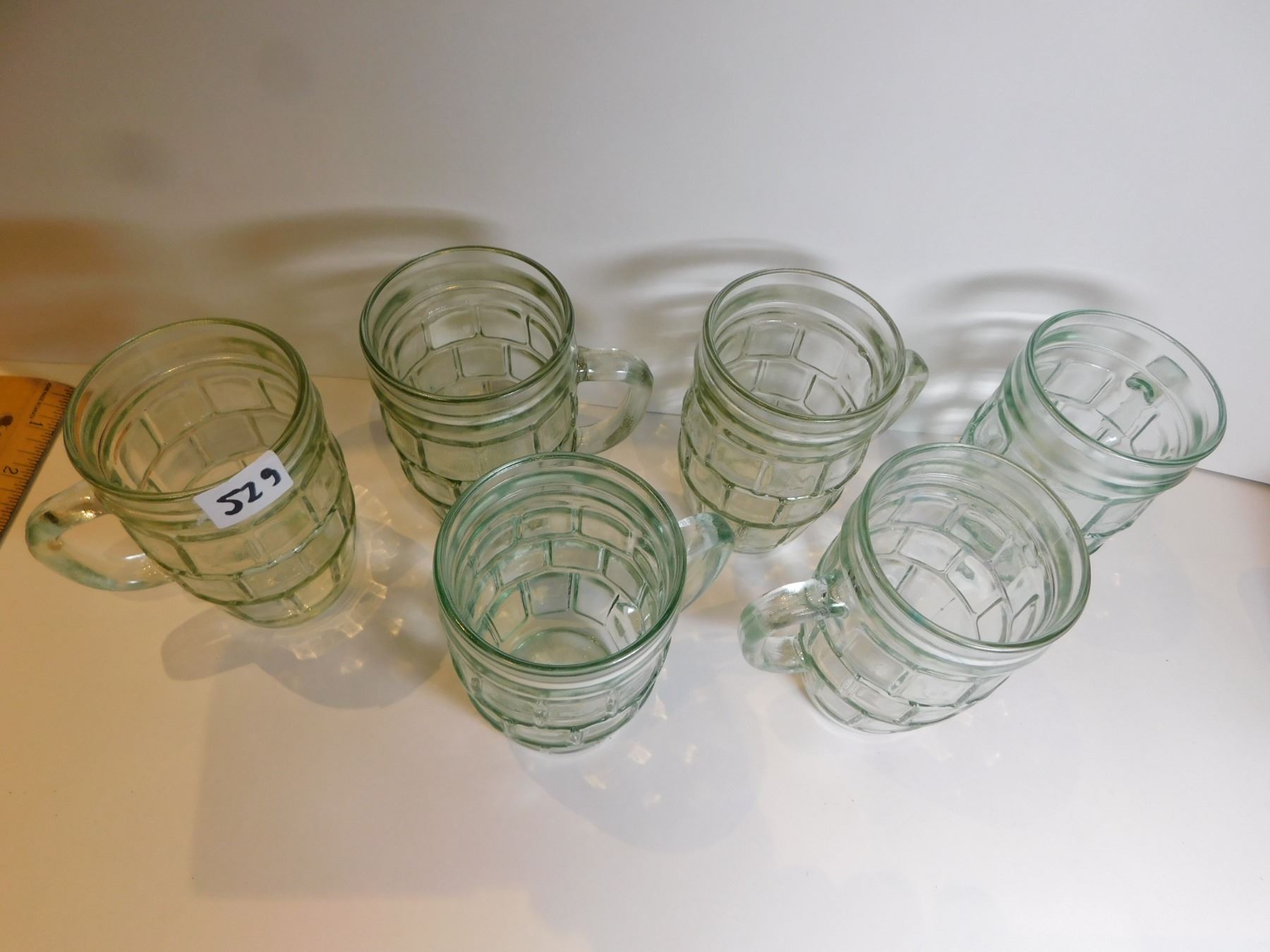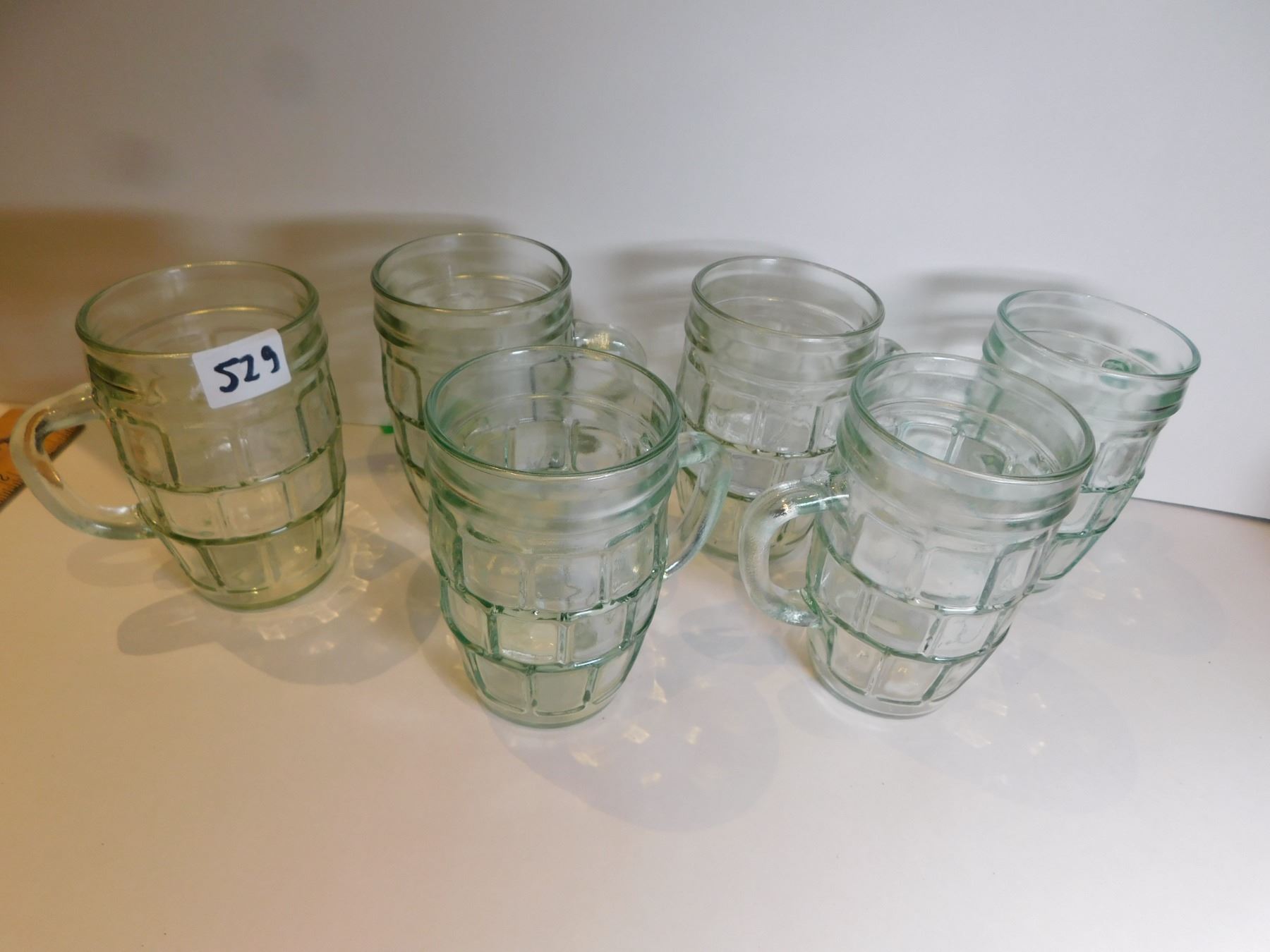 SIX GREEN BARREL DRINKING GLASSES