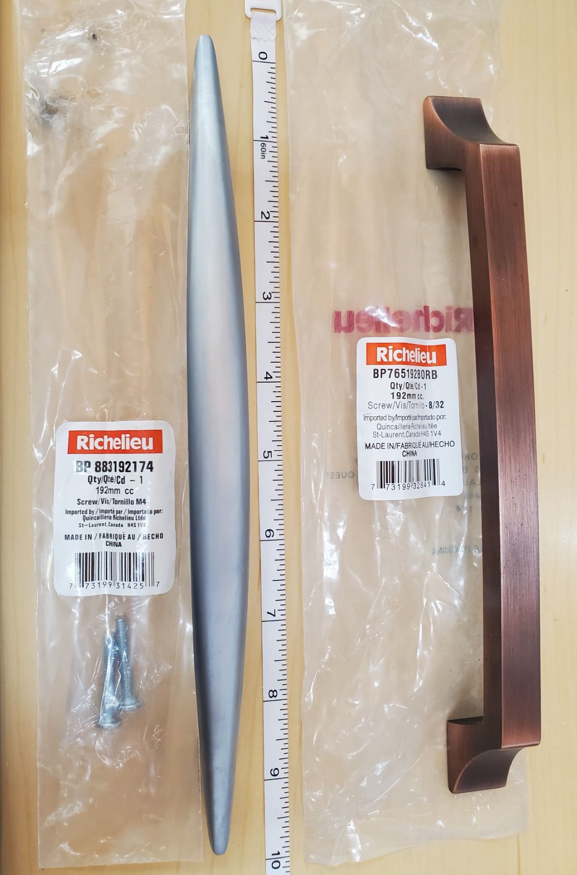 SIXTEEN DRAWER PULLS-192 MM & 1 EXTRA BRASS COLOURED