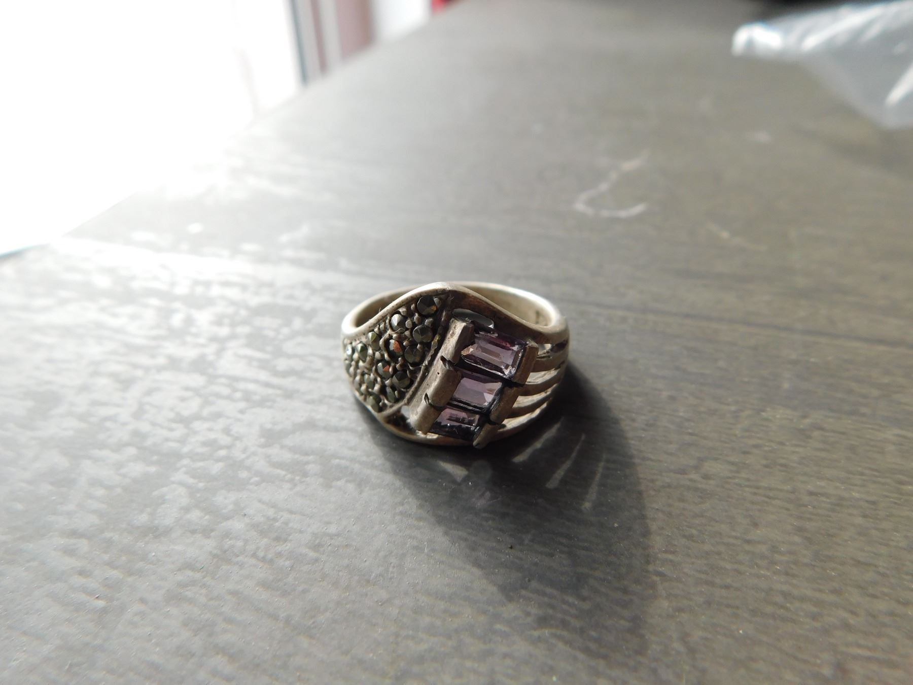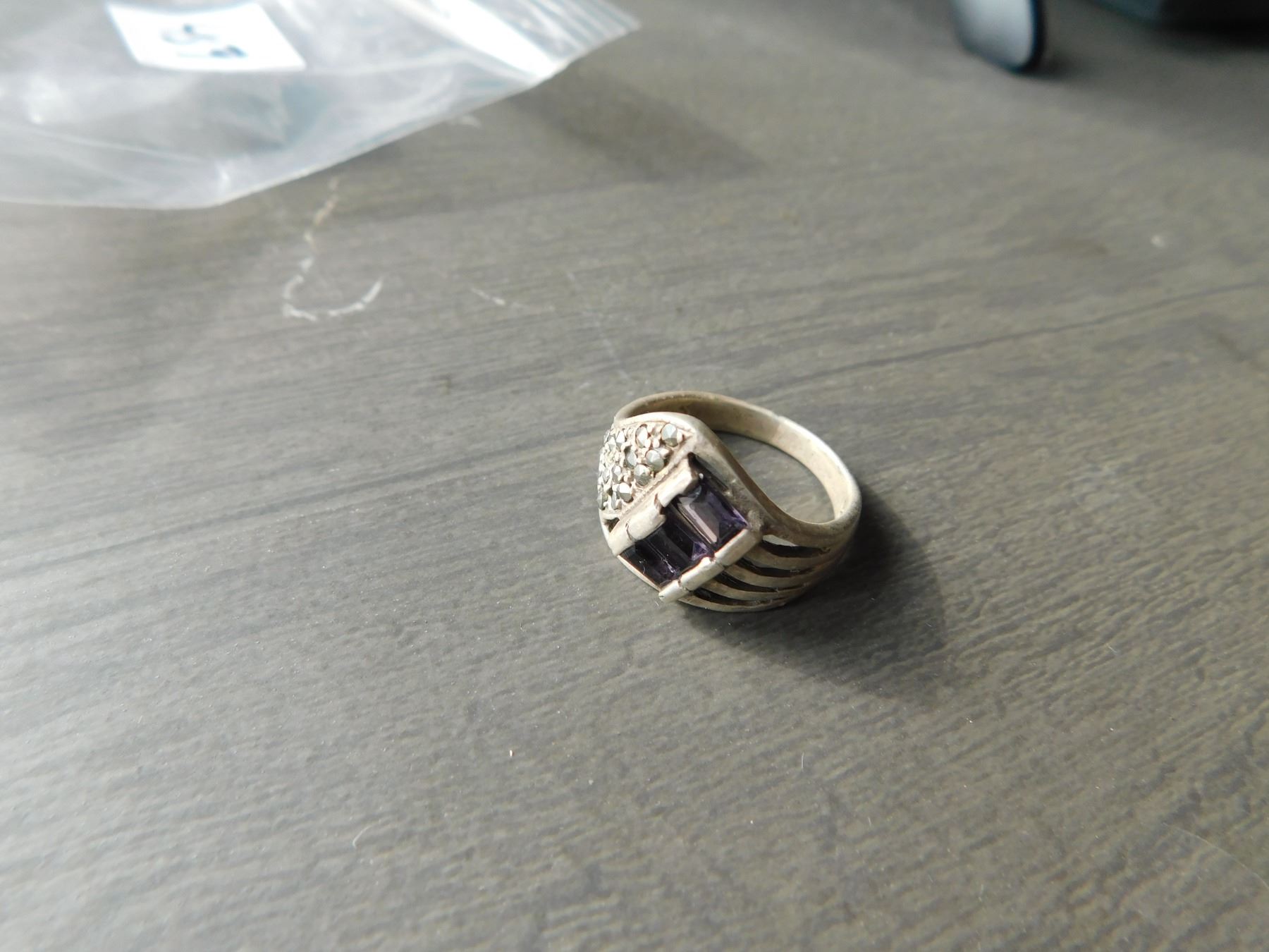 SIZE 8 RING WITH AMETHYST BAGUETTES SILVER 5.65g