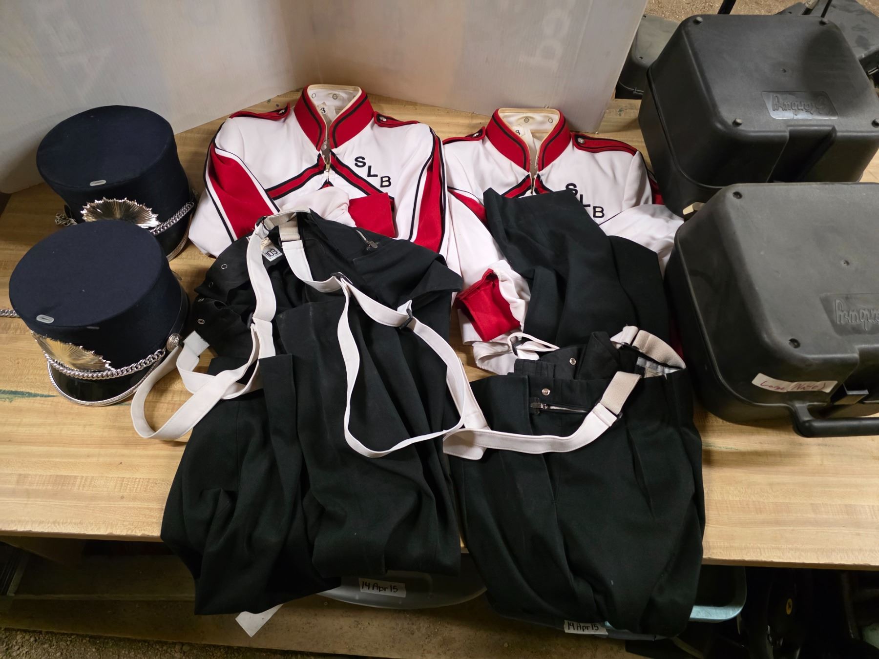 SLB Band uniforms- 2 shirts, 2 pants and 2 hats- sizes 36S and 34S shirts and 30-38 pants