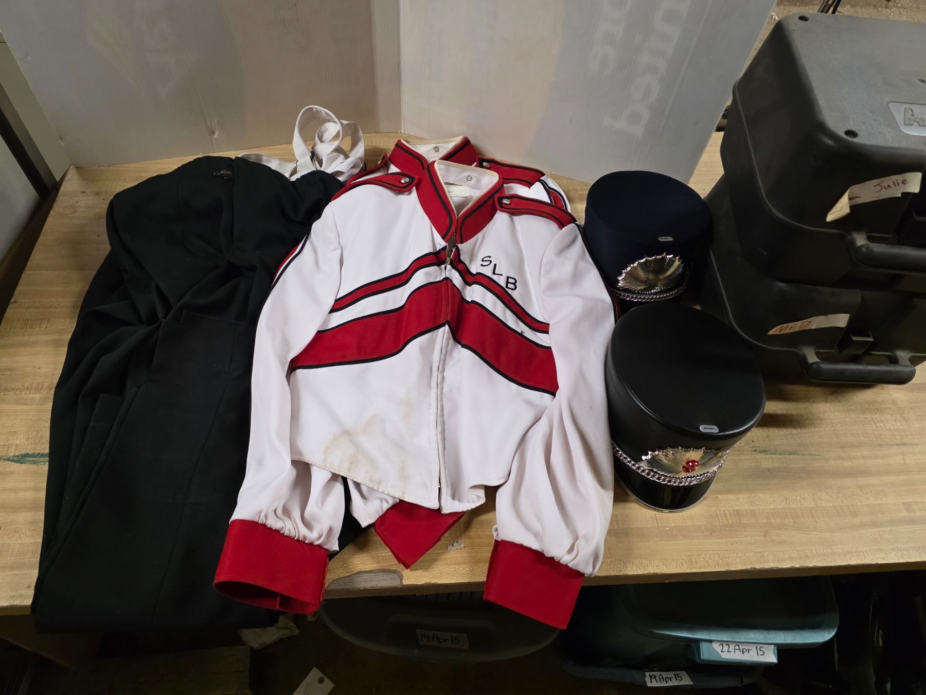 SLB Band uniforms- 2 shirts, 2 pants and 2 hats- sizes 46S and 38R shirts and 34-46, 30-38 pants